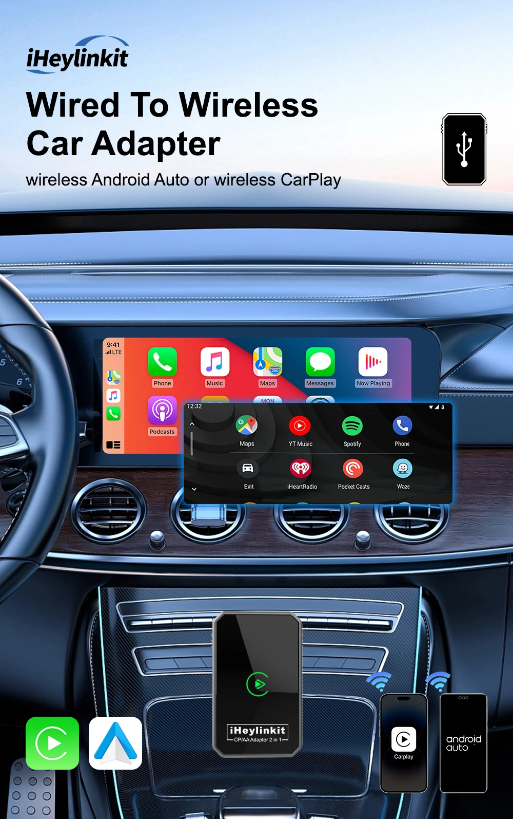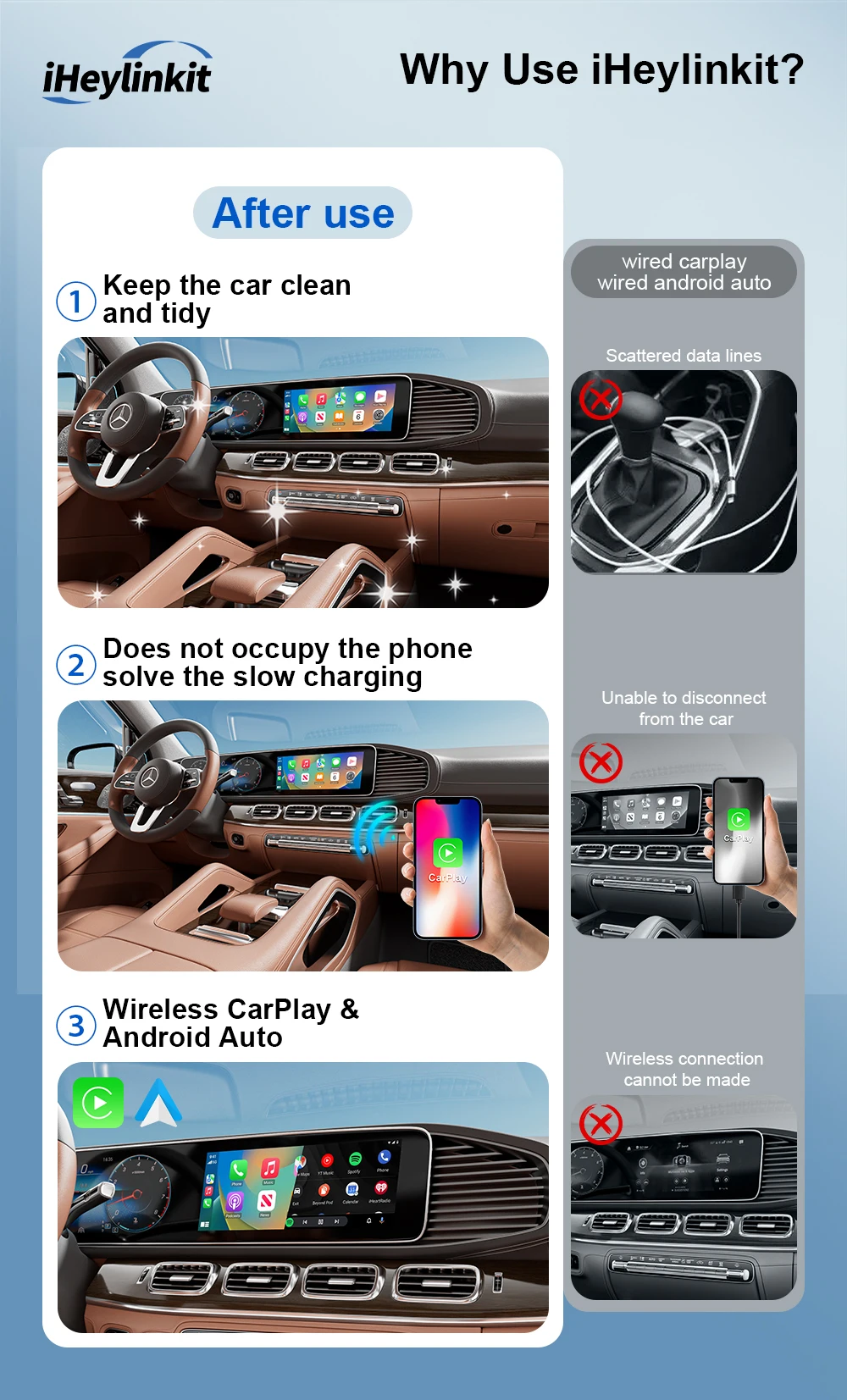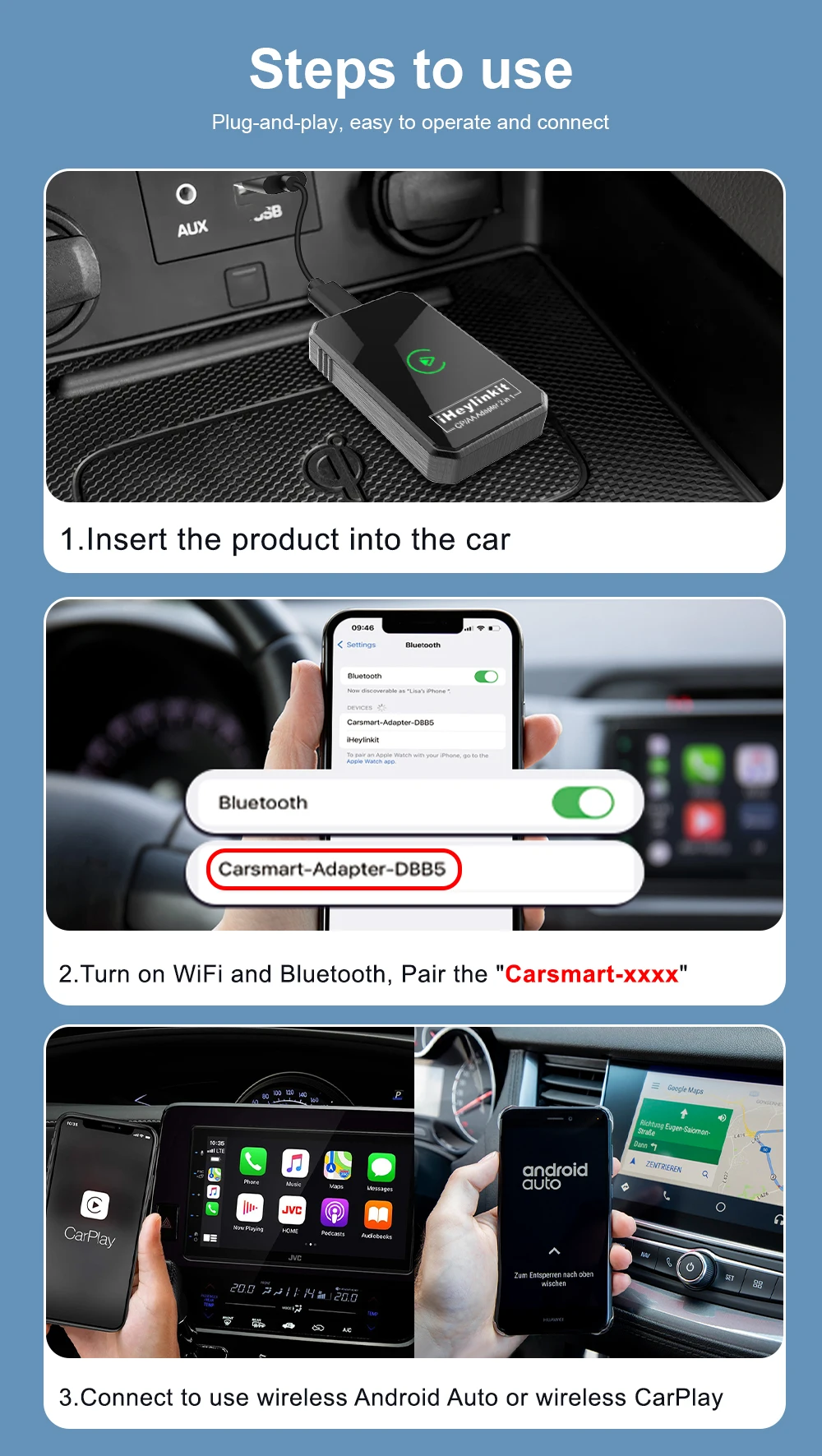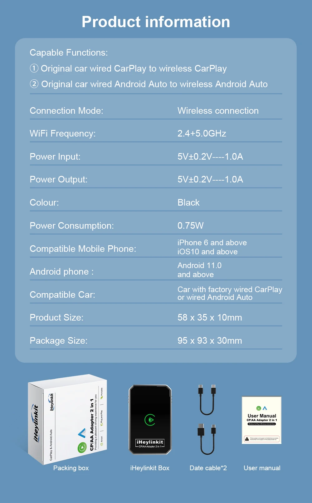 Supported car models: Cars with original wired CarPlay or Android Auto function
