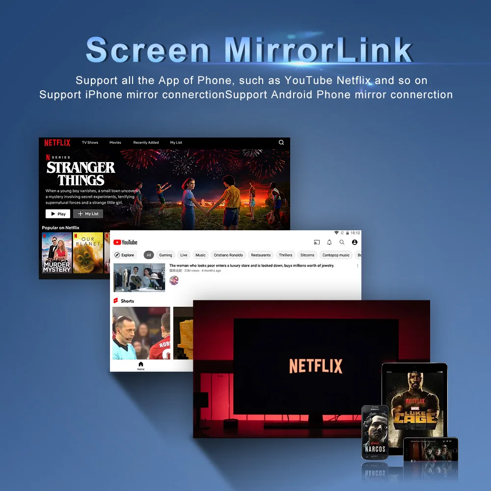 Soporte para YouTube, Netflix, etc. AppsSupport Screen Split, Mirroring.