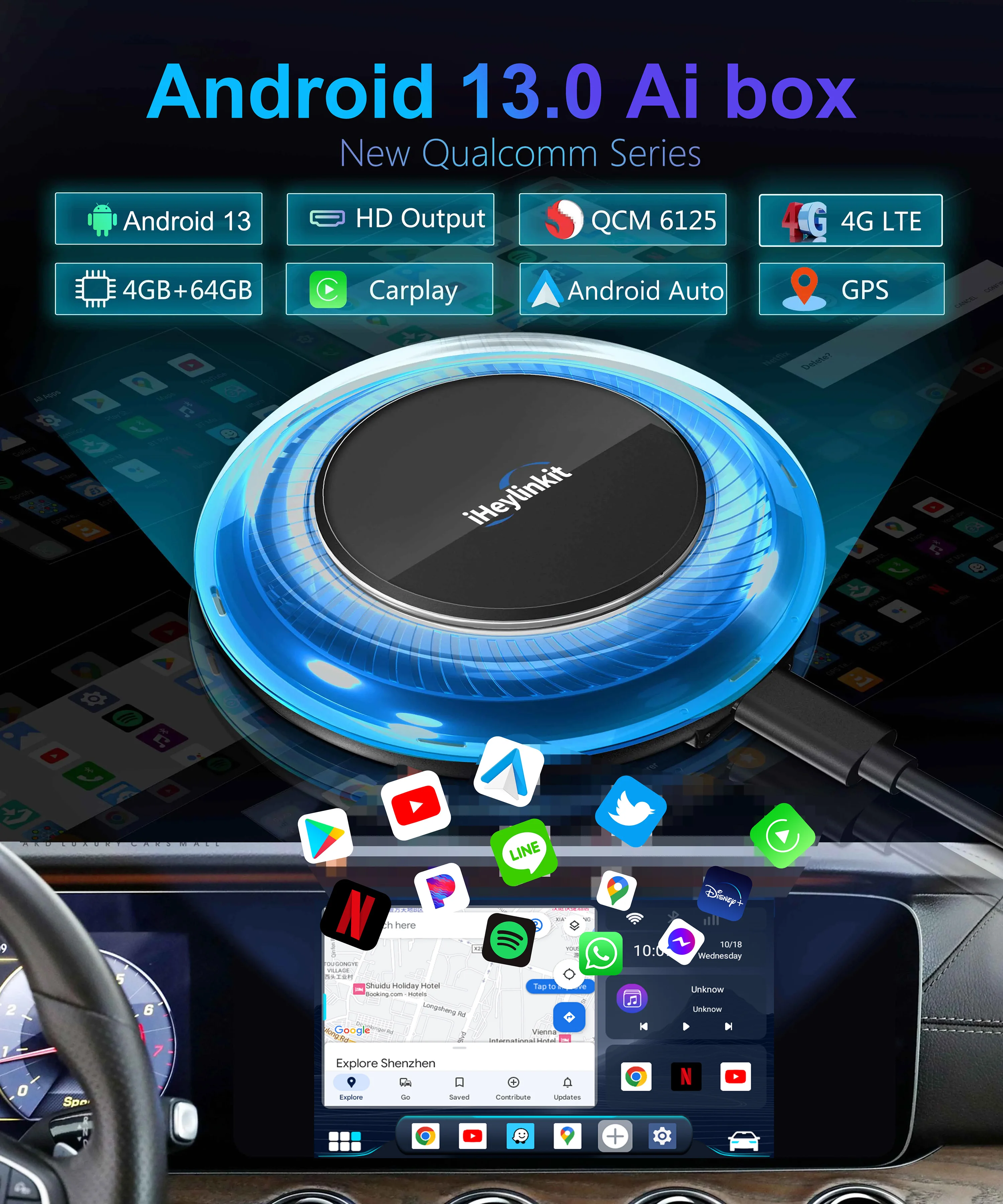 Comprar IHeylinkit-caja de IA para coche, Apple Carplay inalámbrico, Android Auto CP608, Android 13, QCM6125, 8 núcleos, salida HD, accesorios para coche Benz VW