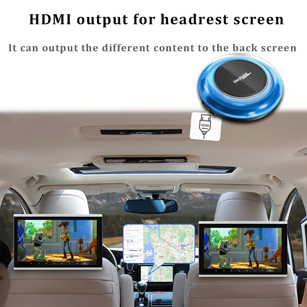 ✅La salida HDMI admite la pantalla frontal y la pantalla de la almohada trasera para reproducir diferentes contenidos, por ejemplo, la pantalla frontal necesita navegar, los invitados traseros pueden seguir disfrutando de la visualización de videos