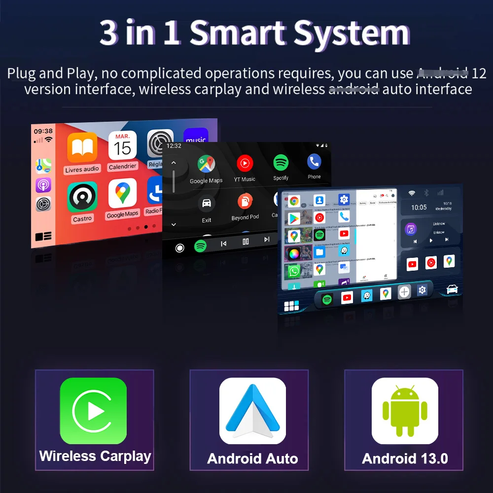 Sistema inteligente 3 en 1 (sistema Android 13 + carplay inalámbrico + Android automático inalámbrico)