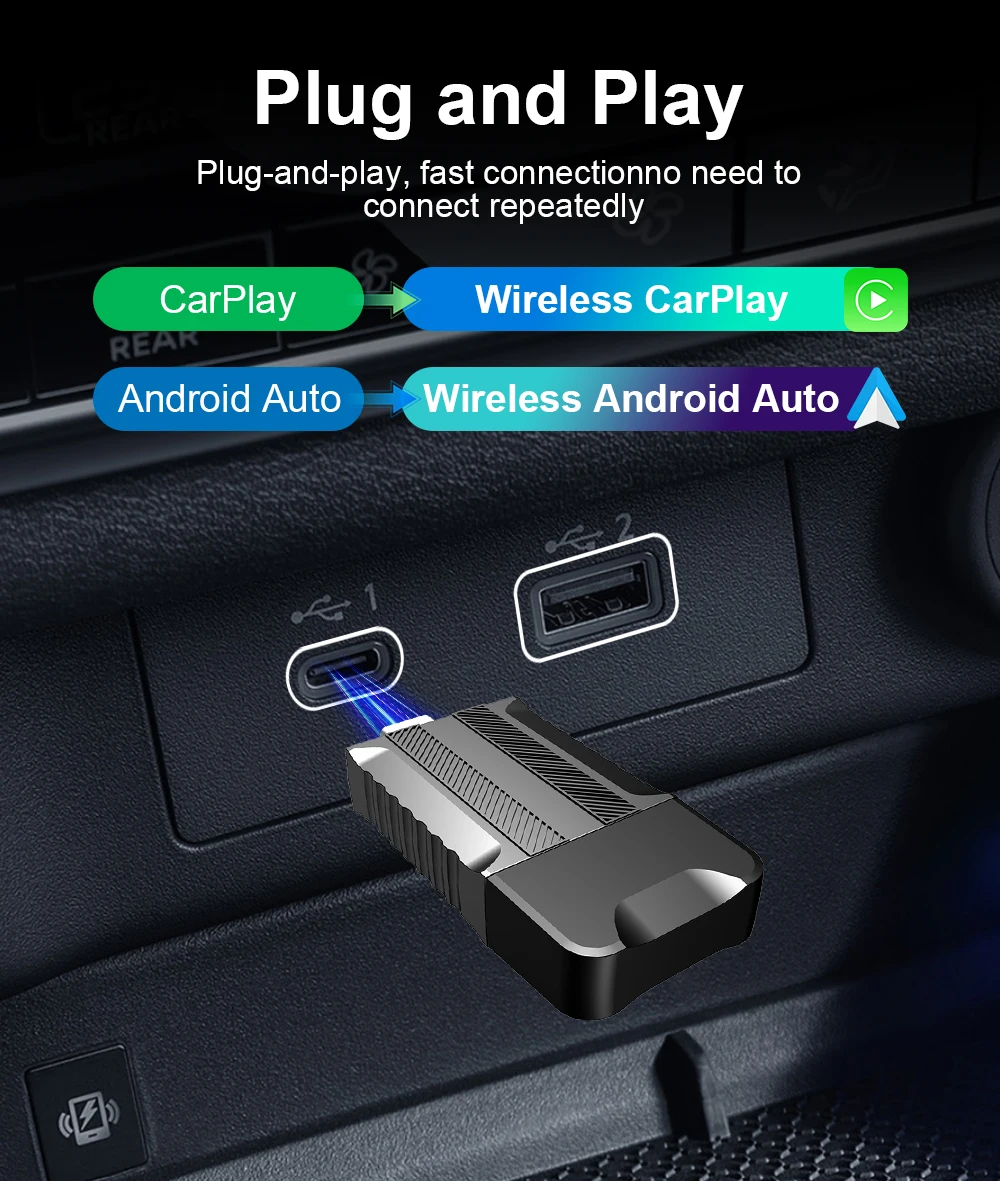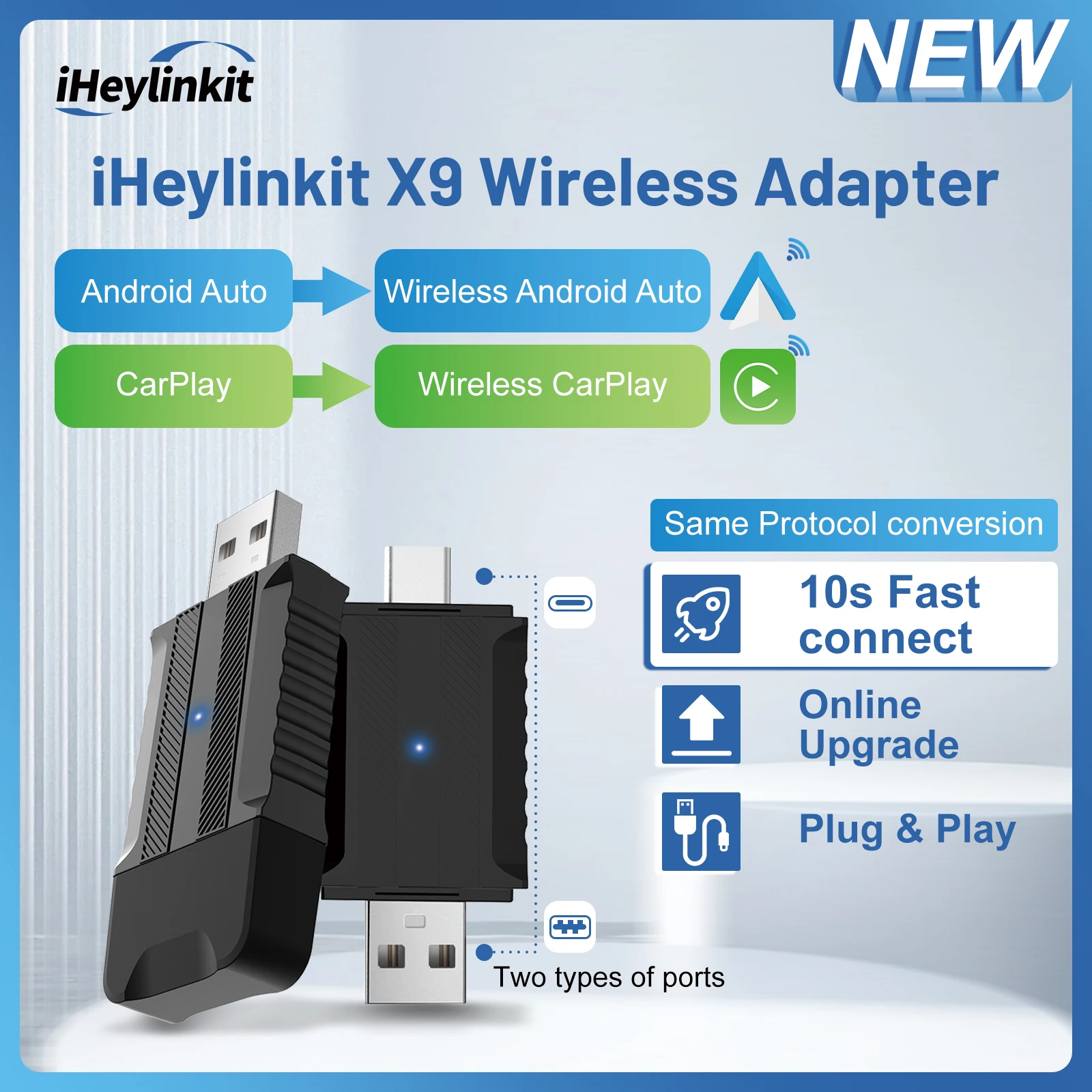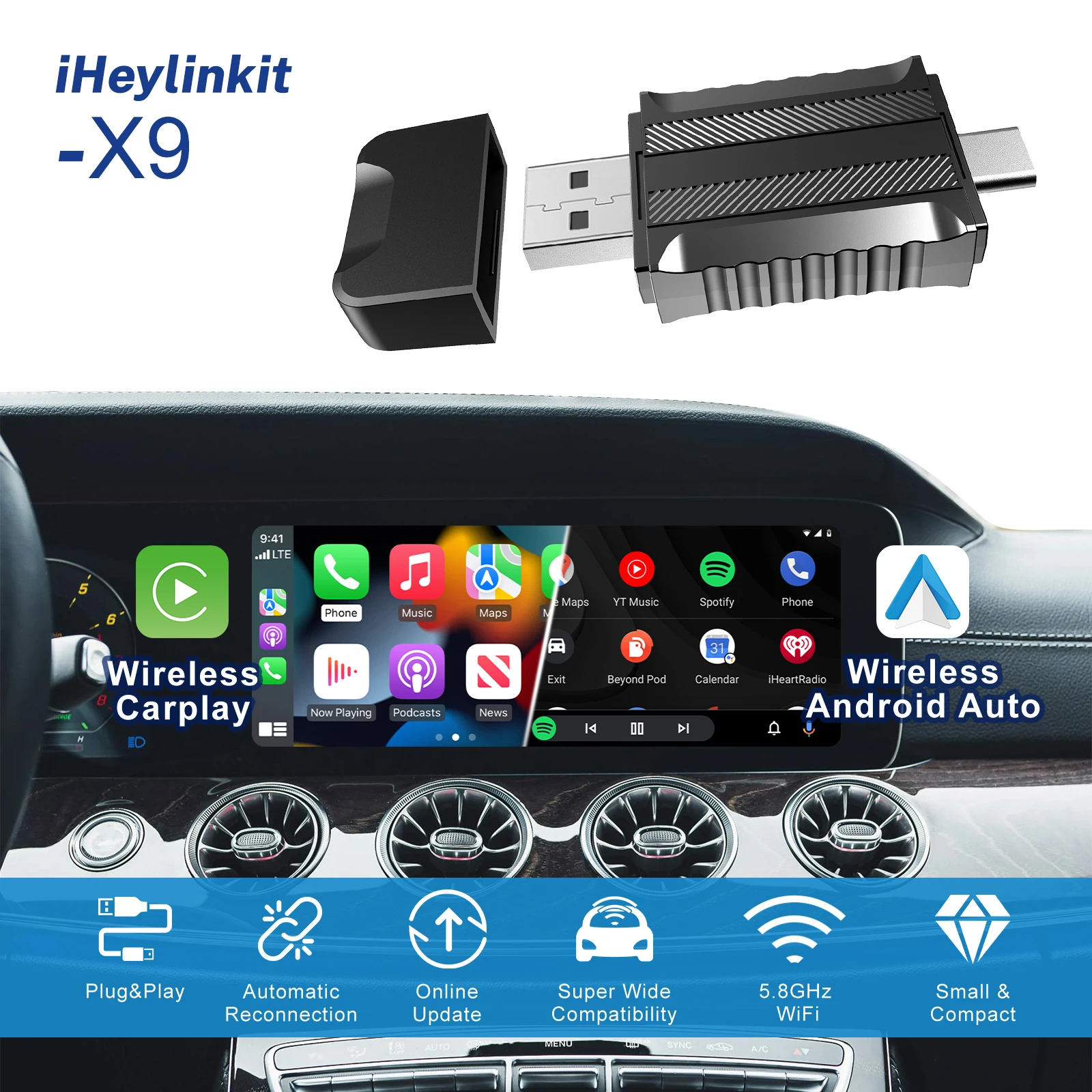Comprar IHeylinkit nuevo 2 en 1 Mini inalámbrico Android Auto adaptador CarPlay inalámbrico USB inteligente Dongle Plug And Play 2,4/5Ghz para Radio de coche