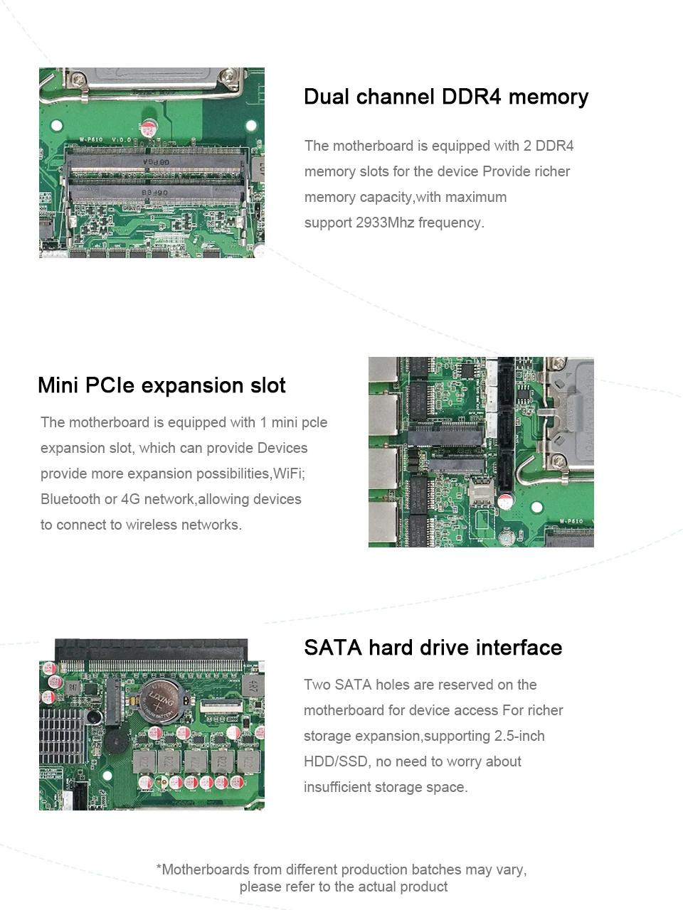 Excelente capacidad de expansión, la placa base proporciona Mini PCIe; M.2 KeyB admite ranuras de expansión de módulo de red adicionales, para que pueda actualizar y ampliar según sea necesario.