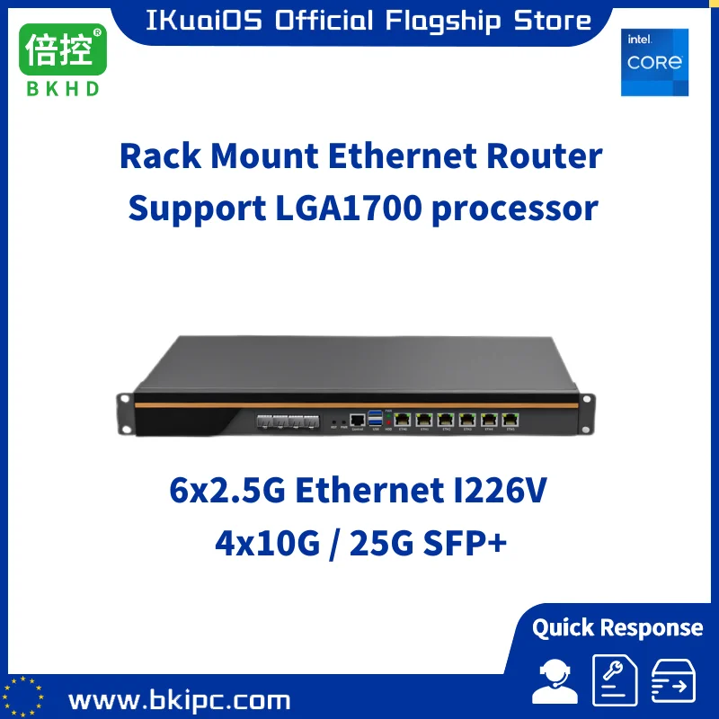 Comprar IKuaiOS-enrutador montado en Rack, servidor de red Firewall, B660 6L 4S LGA1700 Core i3 i5 i7 6x2,5G Ethernet 4x10G SFP 25G SFP28 1U