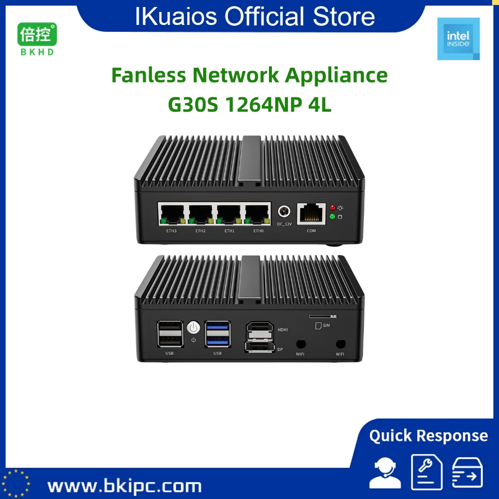 Comprar IKuaiOS-Mini Host sin ventilador con N100 CPU 4LAN Intel i226 2,5G Ethernet para Firewall Router Sever Gateway G30S 1264NP-12