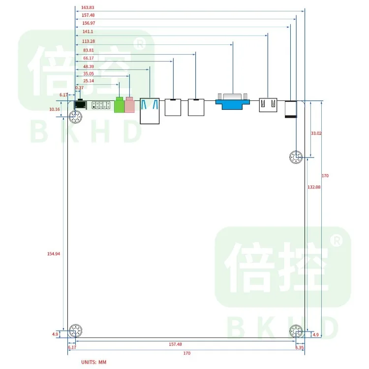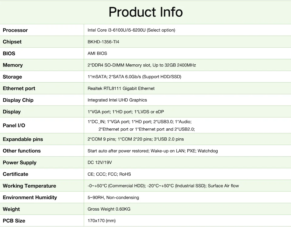 Tamaño:Diseño Mini ITX, compacto y ligero, fácil de instalar, se puede instalar en pantallas táctiles, bastidores y carcasas de escritorio, adecuado para una amplia gama de escenarios de aplicaciones industriales y comerciales.