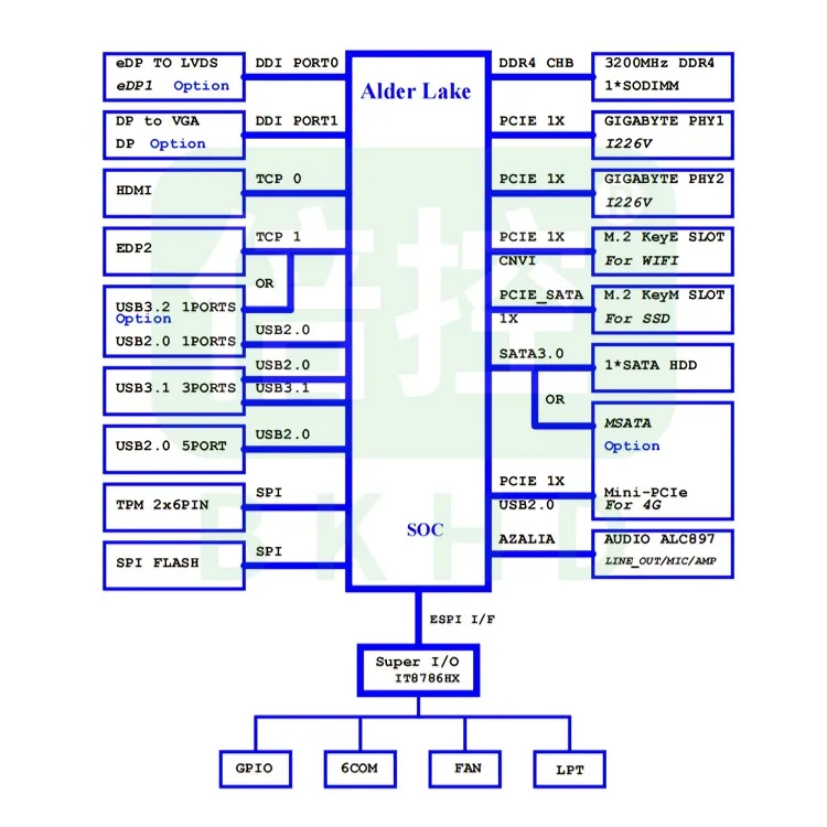 Ranura extensible:Proporciona 1 mPCIe y 1 M. Ranura de expansión de 2 teclas E, puede agregar placas de expansión para aumentar la flexibilidad del sistema.