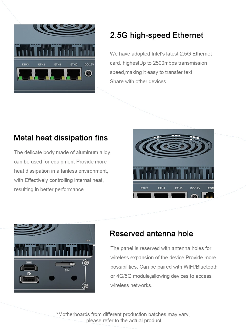 Equipado con el chip Intel i226, proporciona un ancho de banda de red de hasta 2,5 Gbps, que es adecuado para aplicaciones con altos requisitos de transferencia de datos, mejorando el rendimiento y la estabilidad de la red.
