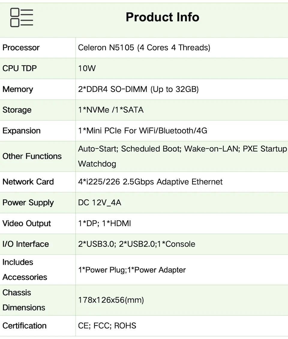 Comprar IKuaiOS-Mini PC sin ventilador G30B Celeron N5105 4x2,5G i226, red de seguridad Compatible con Pfsense Vyos, Linux 1338NP-12