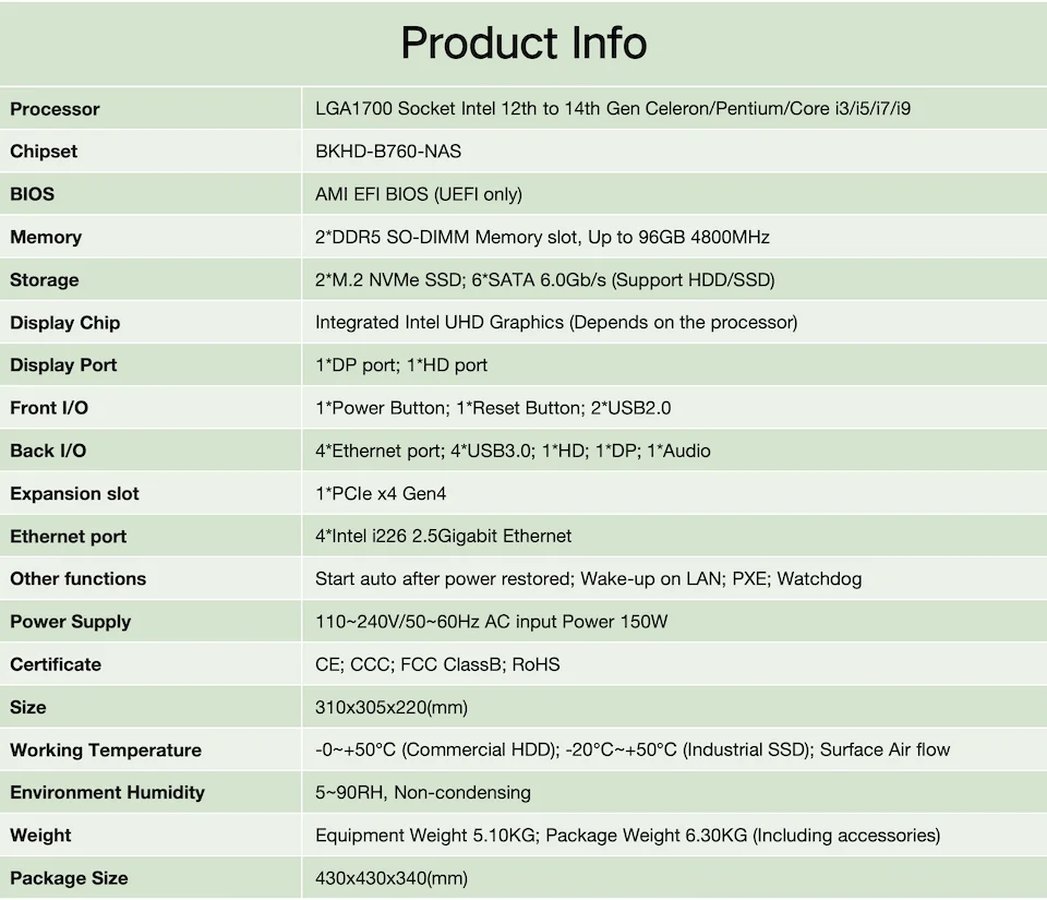 Comprar IKuaiOS-NAS 8-Bay B760 LGA1700 CPU 4LAN 2,5G, Compatible con FreeNAS TrueNAS SATA SSD HDD, Mini servidor para negocios domésticos
