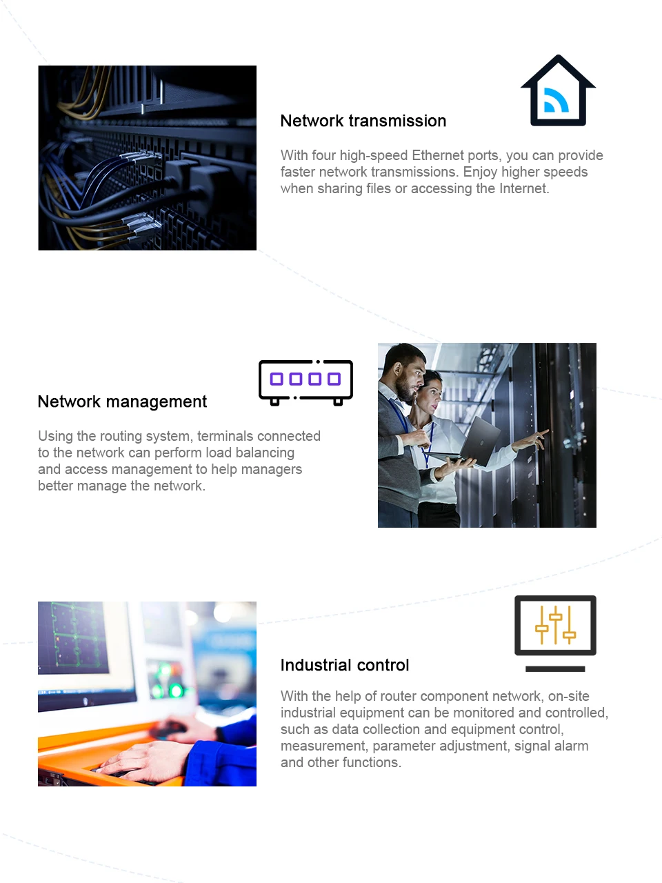 Admite múltiples usuarios simultáneos en línea y un intercambio de datos eficiente, mejorando la eficiencia general de la red empresarial. Múltiples interfaces Gigabit garantizan conexiones de red de alto ancho de banda y baja latencia.