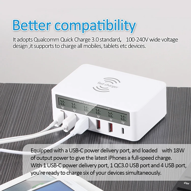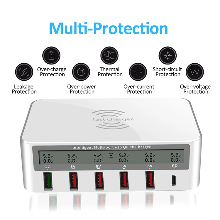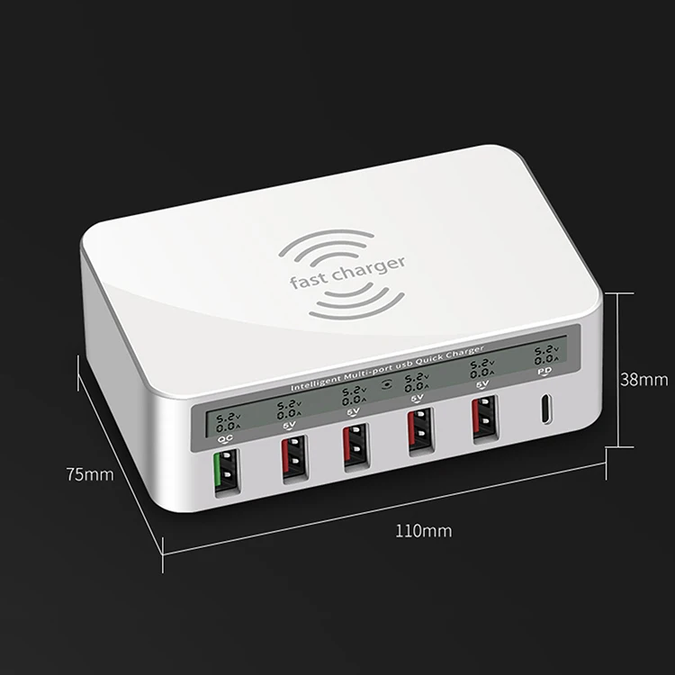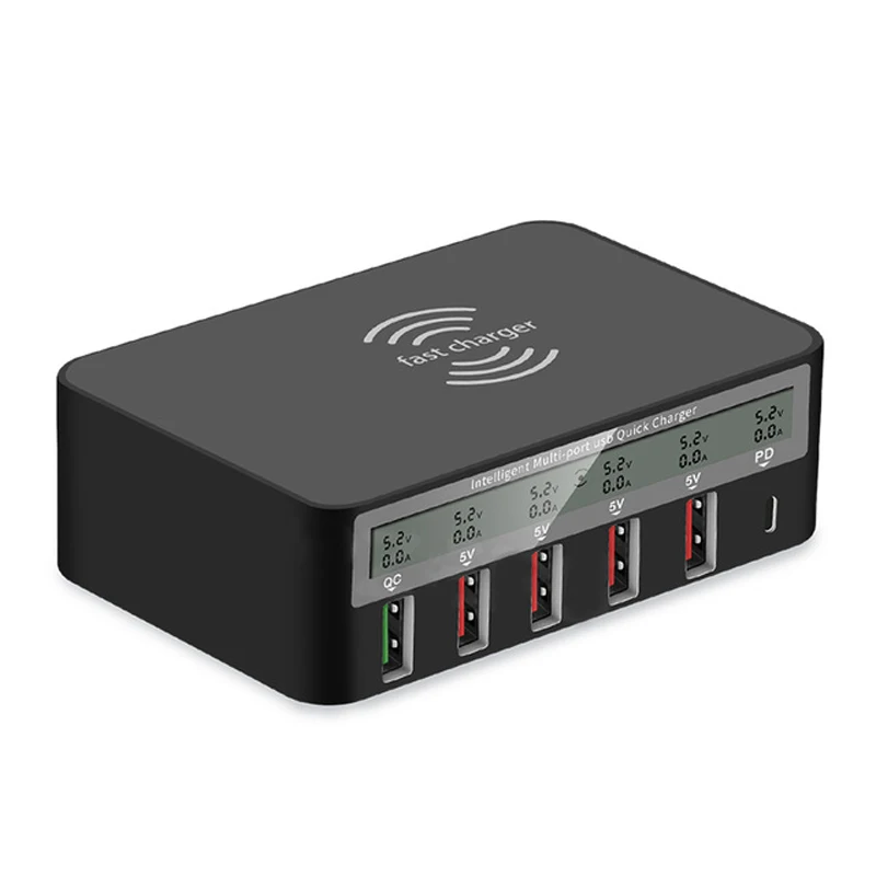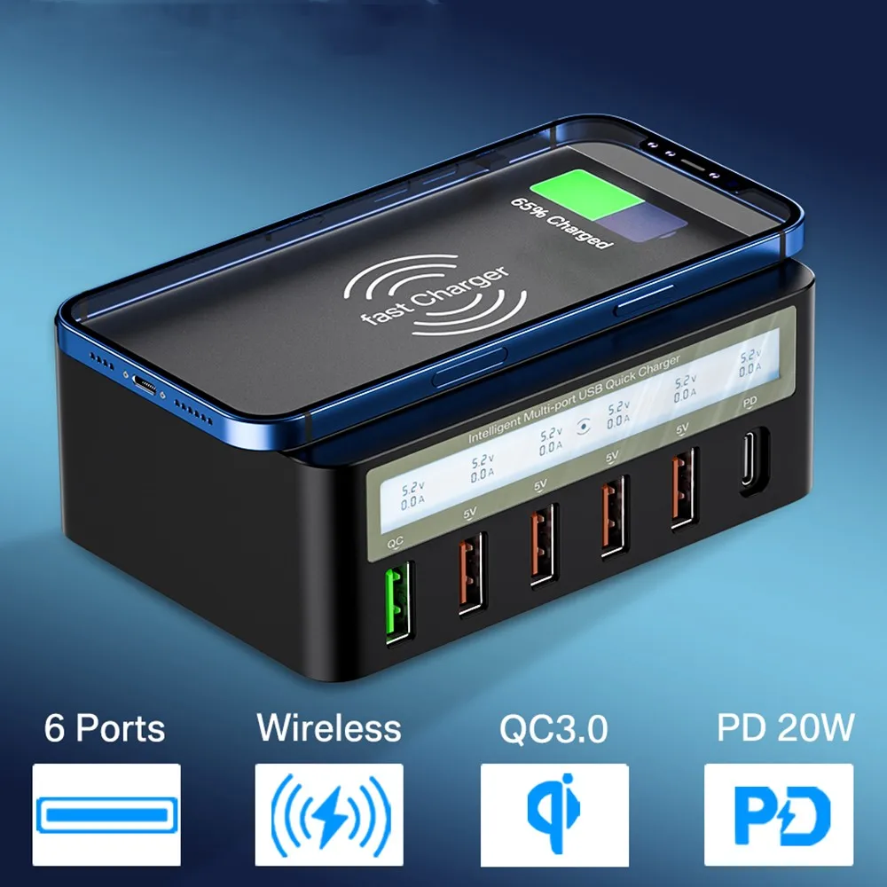 ILEPO 6 puertos USB cargador QI cargador inalámbrico para iPhone11 X XS Samsung Xiaomi HUAWEI QC3.0 PD USB C estación de carga rápida