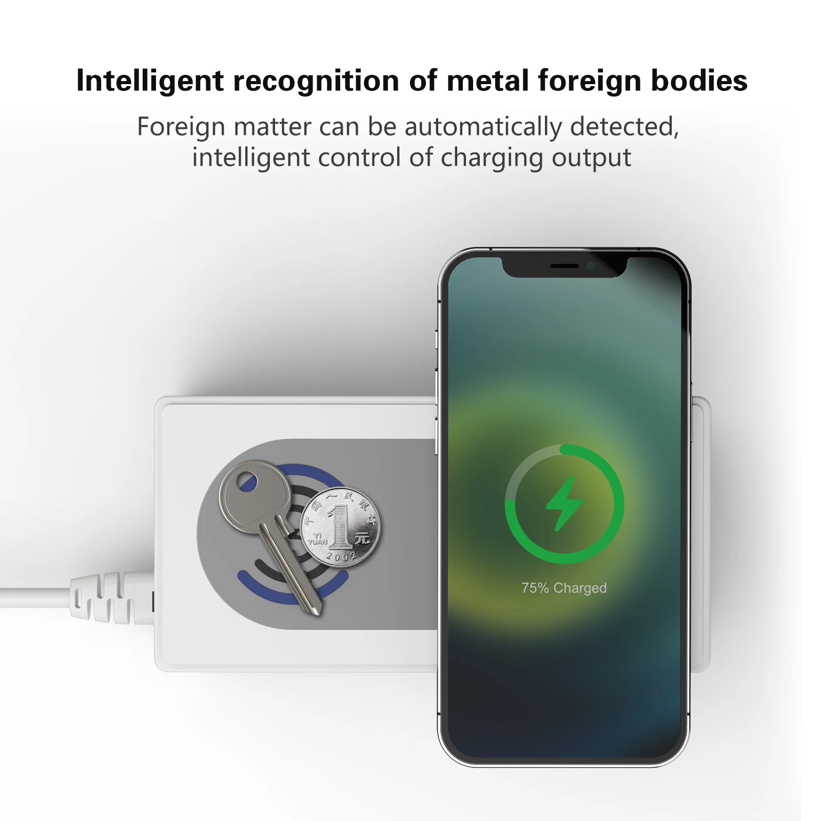 PD: debido a que los teléfonos móviles para Samsung iPhone no abren el protocolo de carga rápida inalámbrica de 15W, este producto no admite carga rápida inalámbrica de 15W para iPhone Samsung, solo admite carga rápida inalámbrica de 7,5 W-10W para Samsung iPhoeDescripción de la función