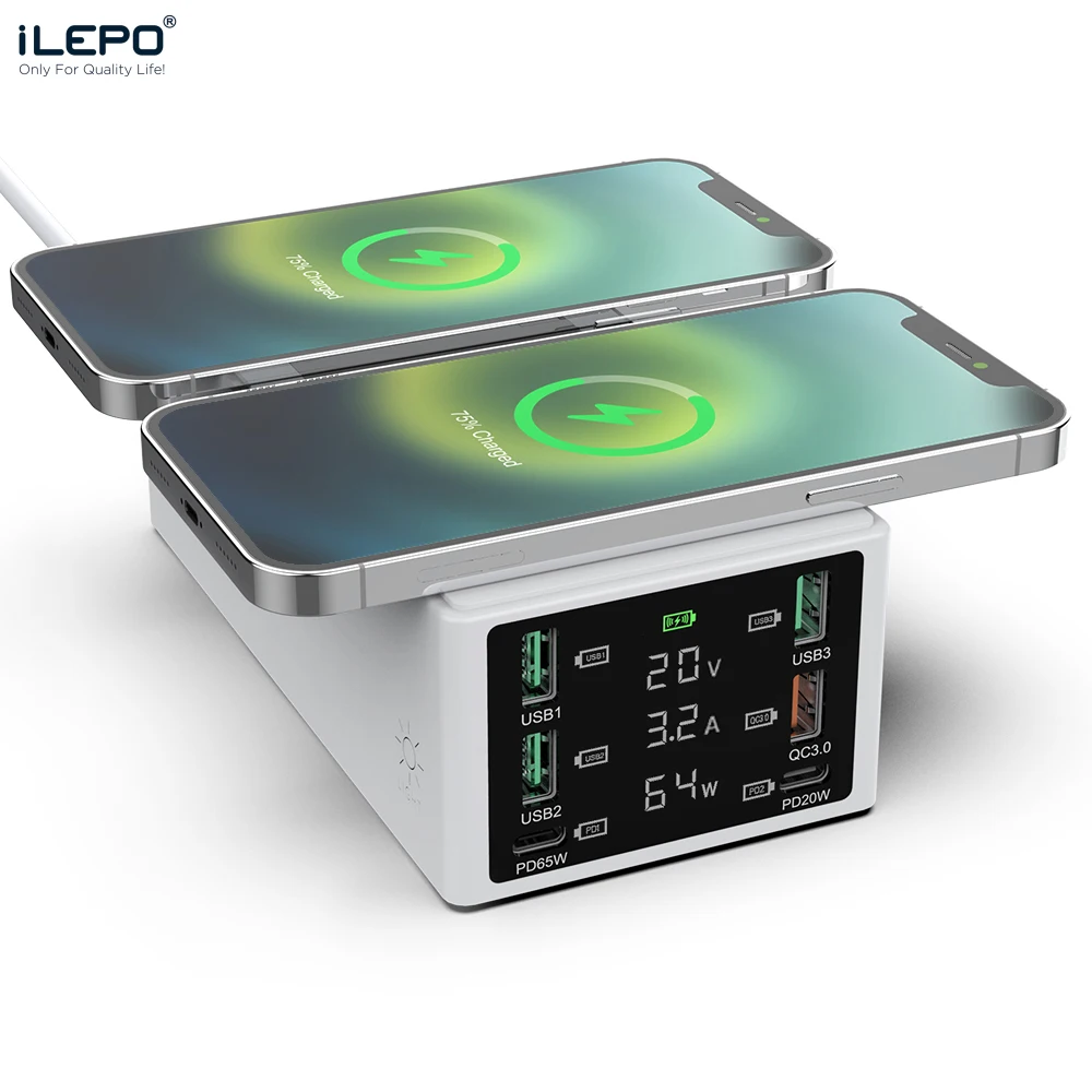 Cargador rápido inalámbrico iLEPO 150W para iPhone12 Pro Max mini 11/8 Samsung Laptop USB C 65W PD3.0 cargador inteligente QC3.0 tipo-cSoporte de carga inalámbrico Dual multipuerto de 150W