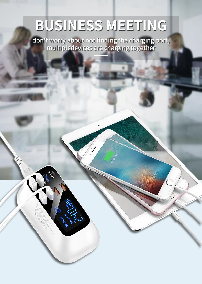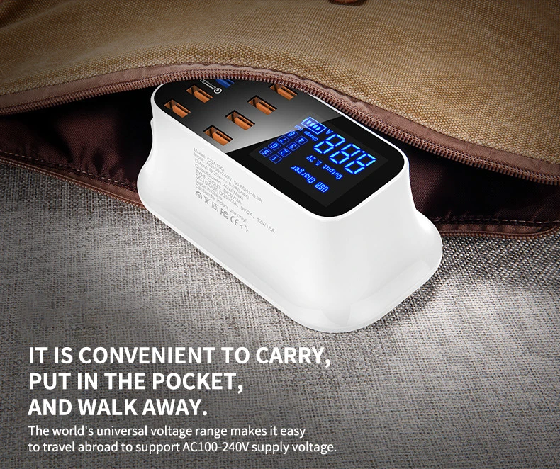 ILEPO 40W USB cargador de teléfono QC3.0 USB C tipo C cargador rápido 8 puertos pantalla Digital estación de carga portátil de viaje carga de pared