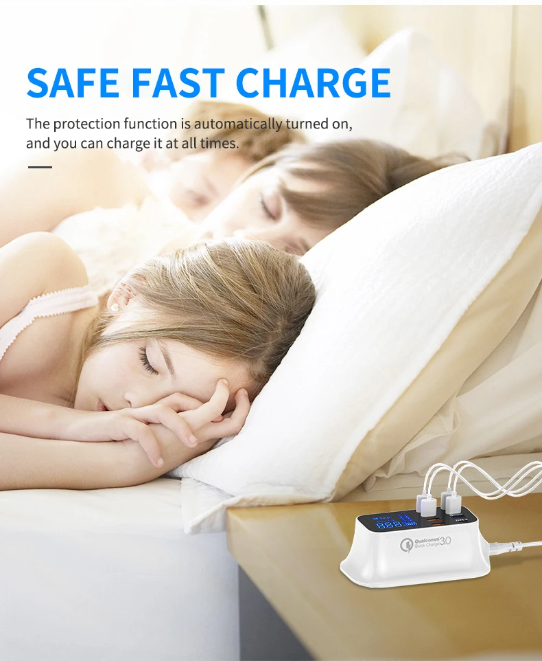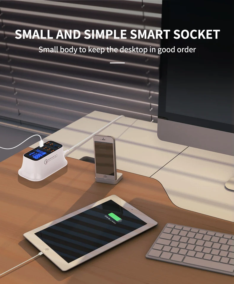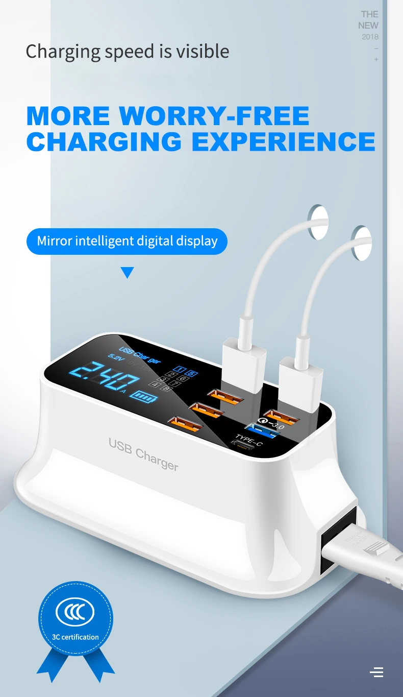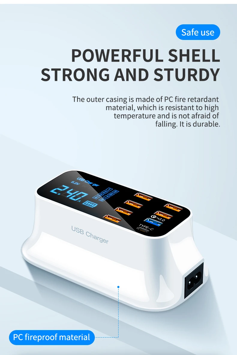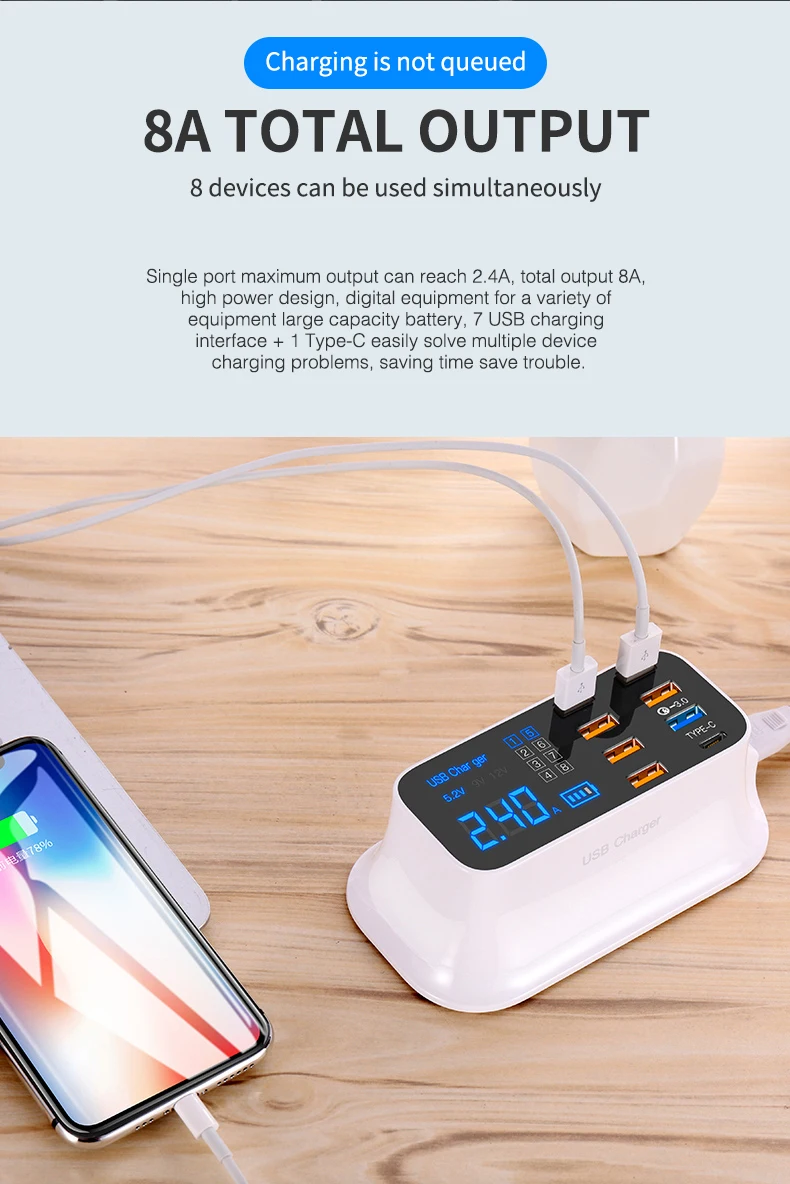 Comprar ILEPO-cargador de teléfono USB QC3.0 de 40W, cargador rápido tipo C con 8 puertos, pantalla Digital, estación de carga portátil de pared para viaje