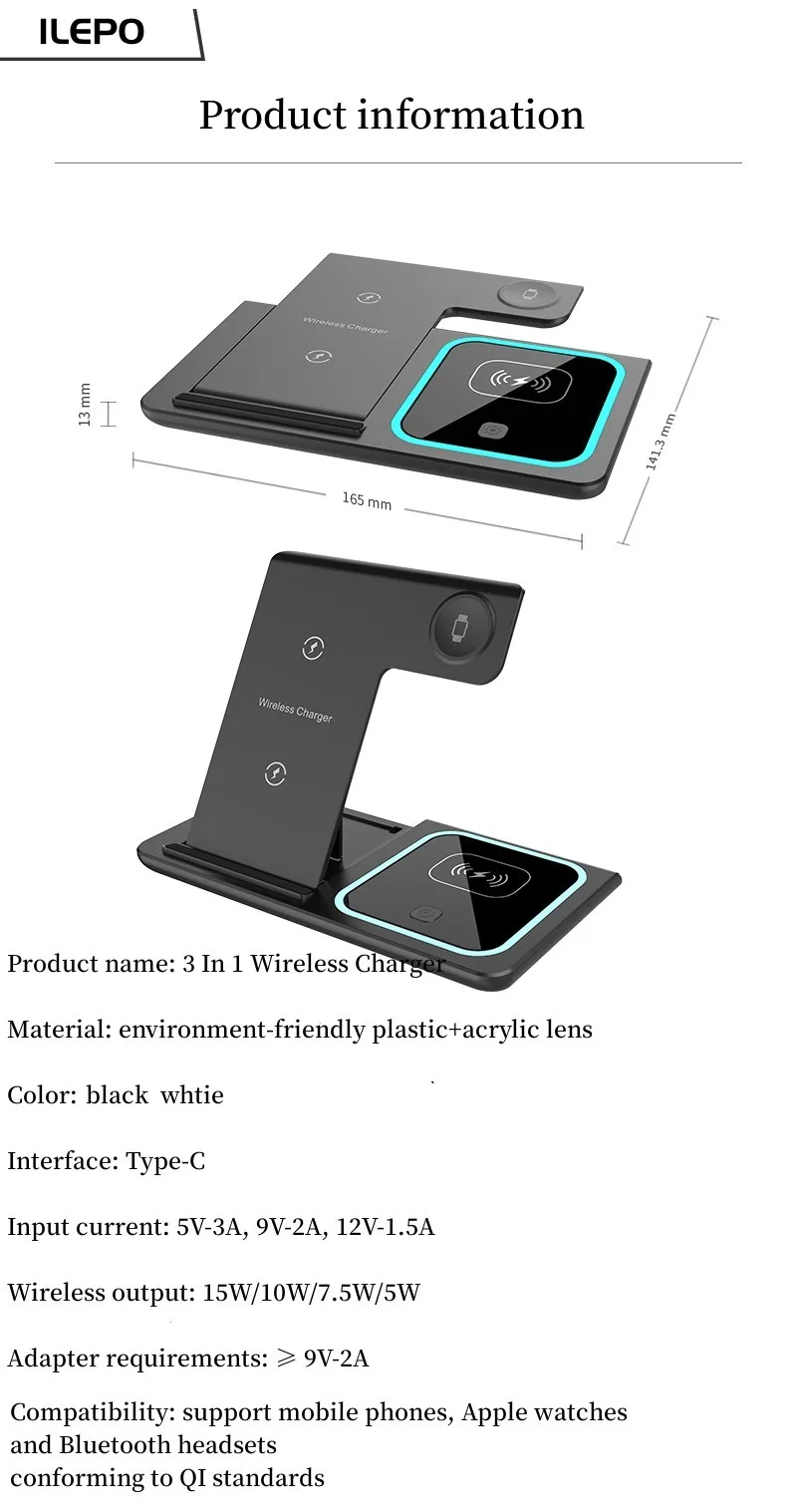 Nombre del producto: Cargador inalámbrico 3 en 1