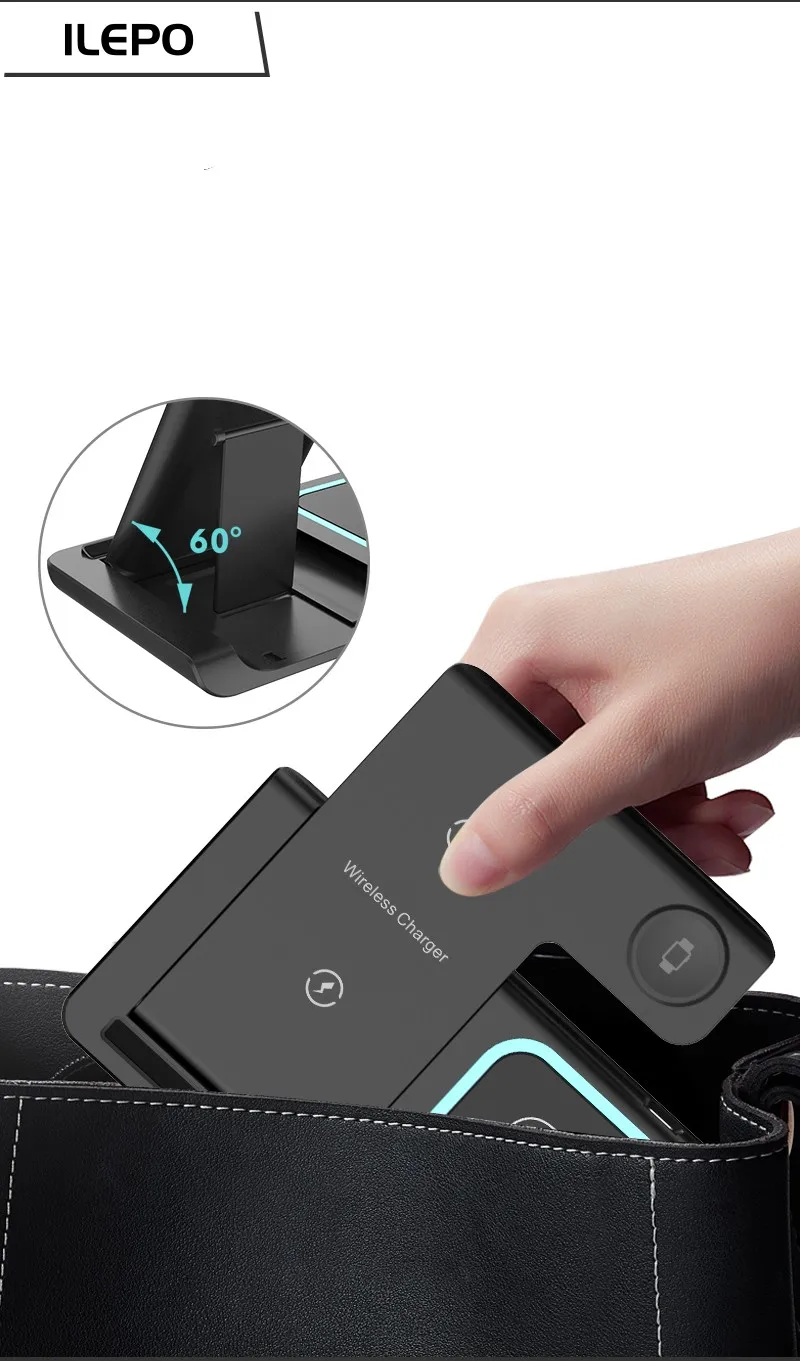 Comprar ILEPO-Soporte de cargador inalámbrico 3 en 1, estación de carga rápida plegable para iPhone 13, 12, 11, Apple Watch, Airpods Pro