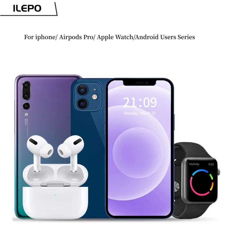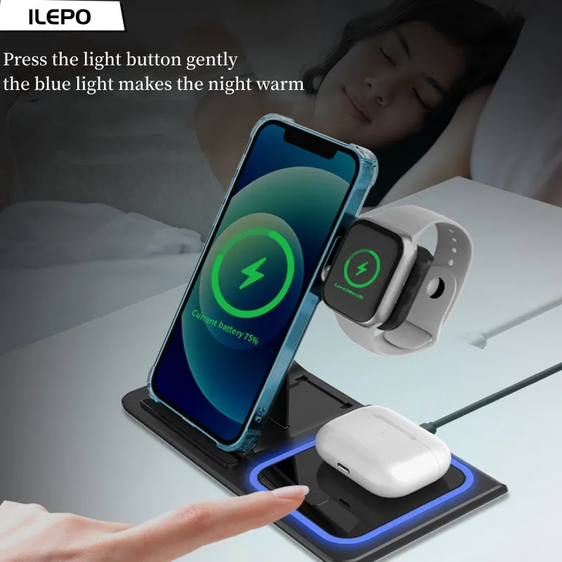 Comprar ILEPO-Soporte de cargador inalámbrico 3 en 1, estación de carga rápida plegable para iPhone 13, 12, 11, Apple Watch, Airpods Pro