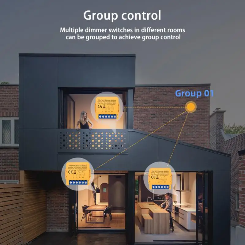 Control de grupo: los interruptores de atenuación en diferentes habitaciones se pueden agrupar para lograr el control de grupo