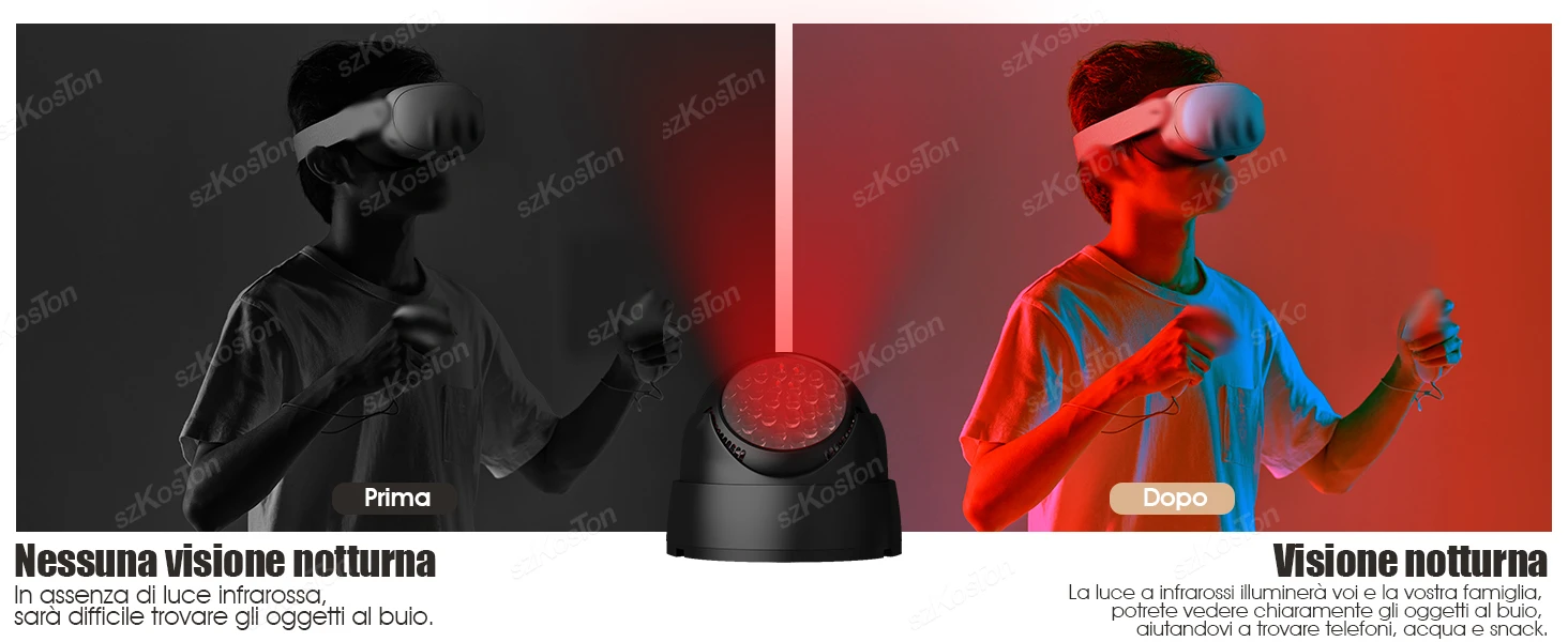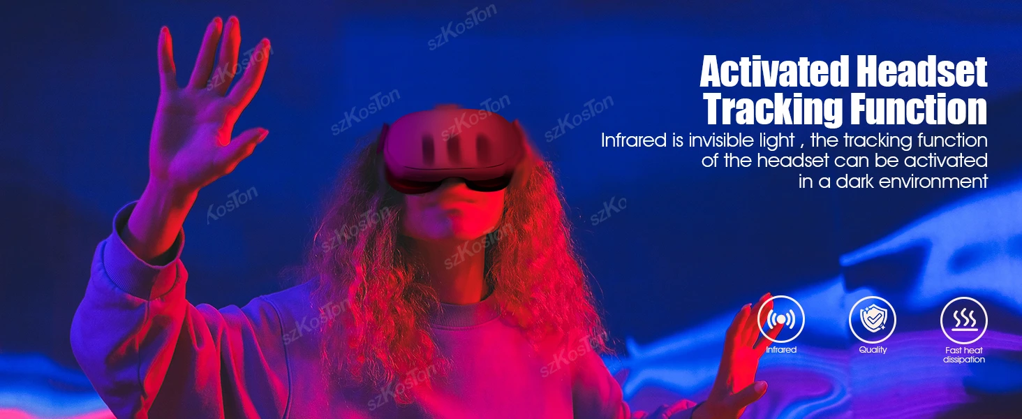 Luz invisible: active el sistema de seguimiento de los auriculares y aumente la sensibilidad del seguimiento manual, la luz de la habitación ya no es necesaria.No compatible con cámara de seguridad.🔺Recordatorio: la luz infrarroja es invisible a simple vista, debe usarse con realidad virtual y otros equipos, así que use unos auriculares de realidad virtual para inspeccionarlos cuando reciba el producto.🔺