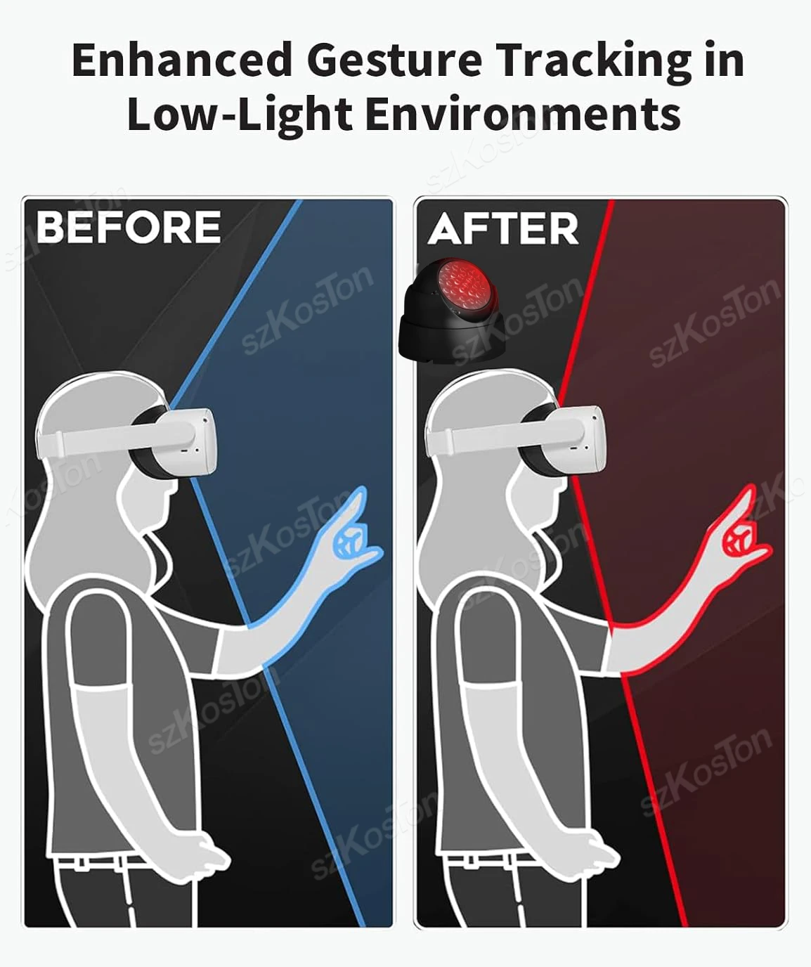 Experiencia inmersiva: la luz se puede controlar en cualquier momento.Con esta luz, puedes jugar VR Game en un ambiente totalmente oscuro, la luz de la parte de la nariz ya no te molestará.