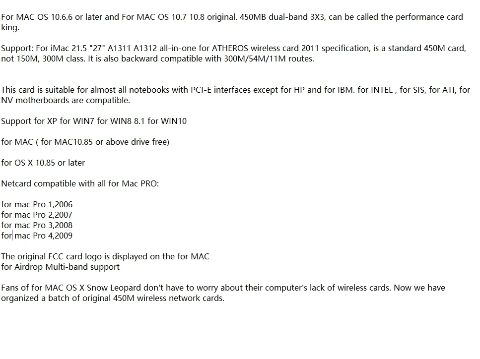 Nombre del producto: Para tarjeta WiFi Imac A1311 A1312