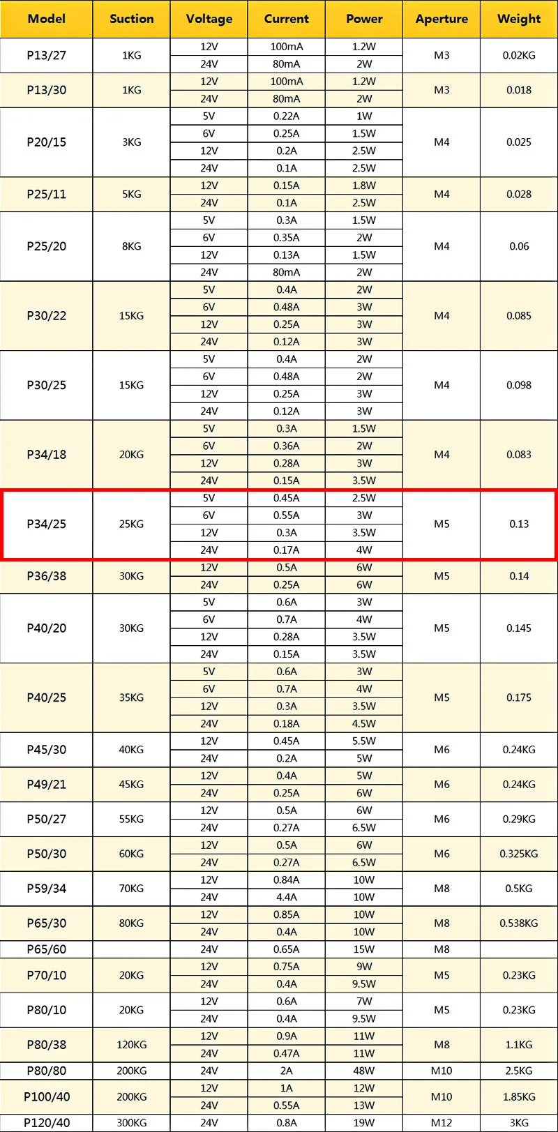 Comprar Imán eléctrico P34/25 12V CC elevación 25Kg 250N ventosa 24V potente electroimán solenoide 5V 6V