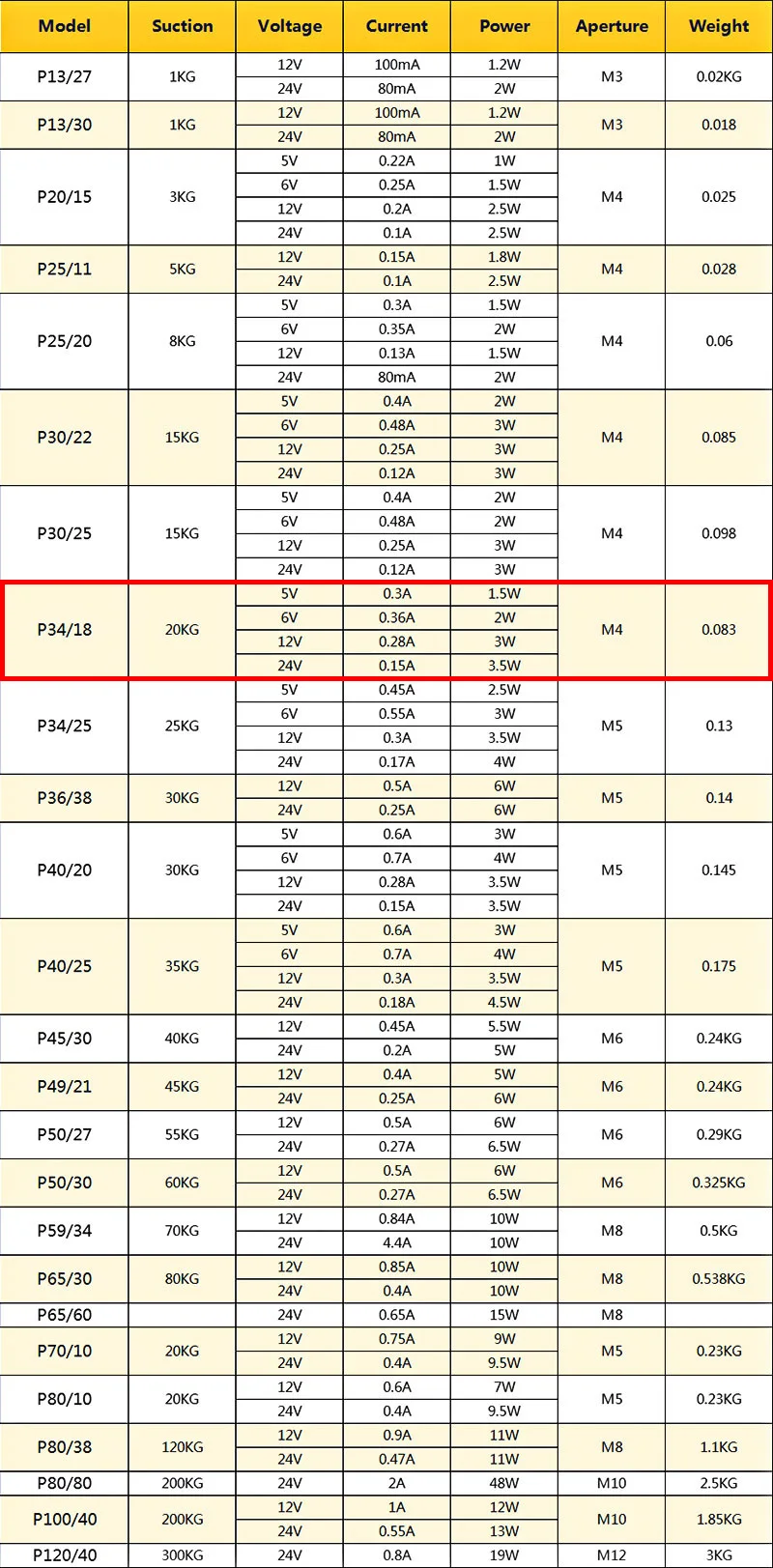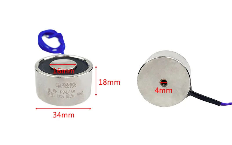 Comprar Imán eléctrico de sujeción de cilindro de 34mm P34/18 20Kg 200N electroimanes de solenoide con ventosa 5V 6V DC 12V 24V