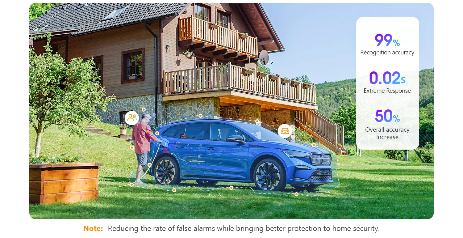 Desarrollado por IMOU SENSE™, La detección de humanos y vehículos de IA recientemente mejorada puede reducir eficazmente las falsas alarmas causadas por mosquitos y temblores de árboles. El rango de detección efectivo puede alcanzar 22 metros para personas y 44 metros para automóviles, asegurando respectivamente que la detección sea realmente precisa.
