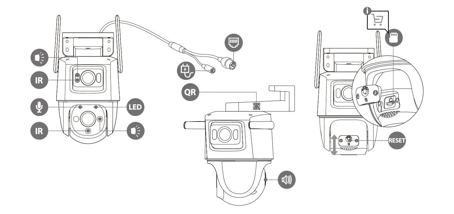 • Cámara PT para exteriores:Diseñada para uso en exteriores, esta Cámara PT soporta condiciones climáticas adversas, por lo que es una opción ideal para la vigilancia de seguridad del hogar.
