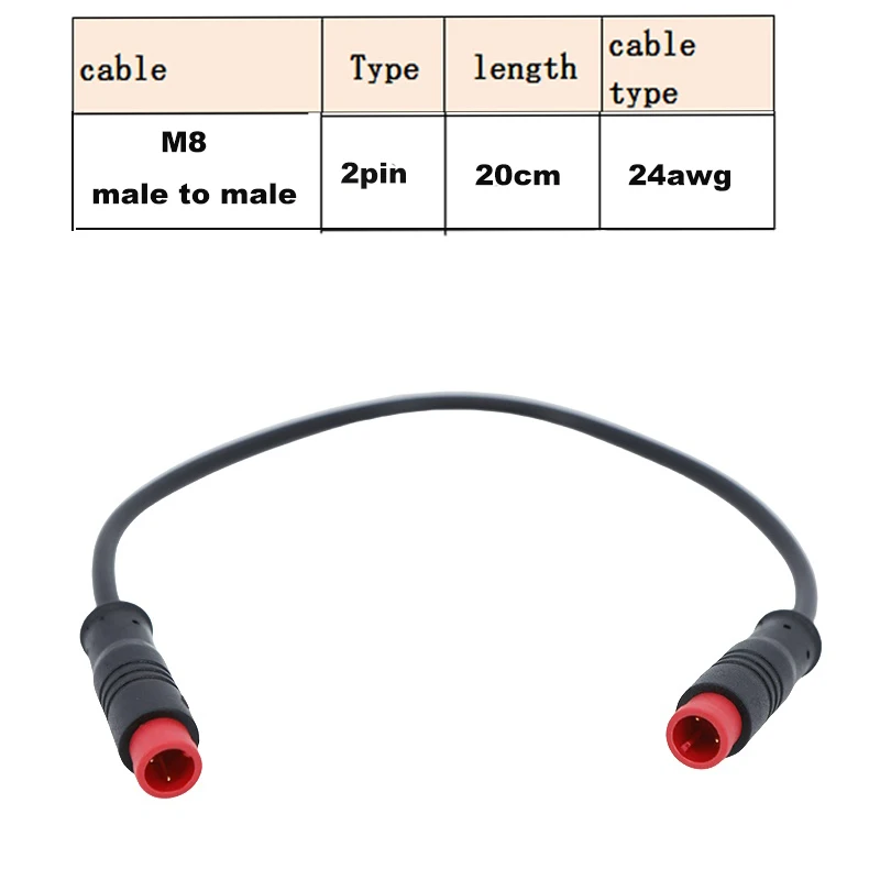 Comprar Impermeable 20cm 30cm m8 2pin core bicicleta eléctrica Butt Plug macho hembra a macho hembra Cable para Ebike sensor Cables de visualización h