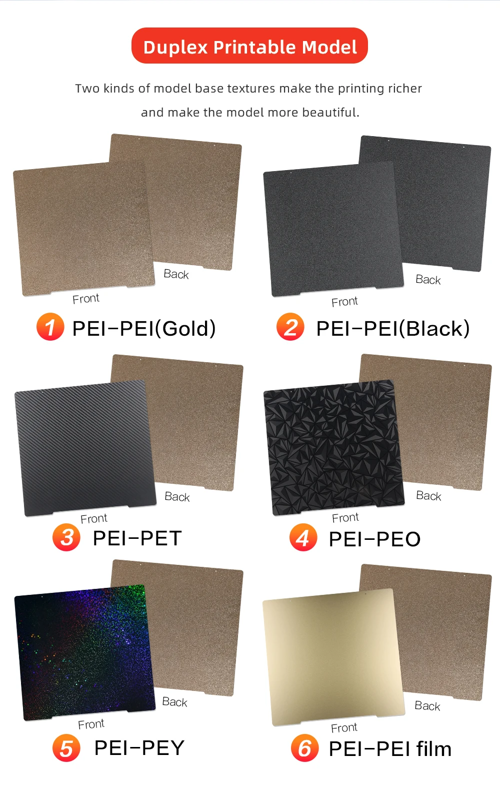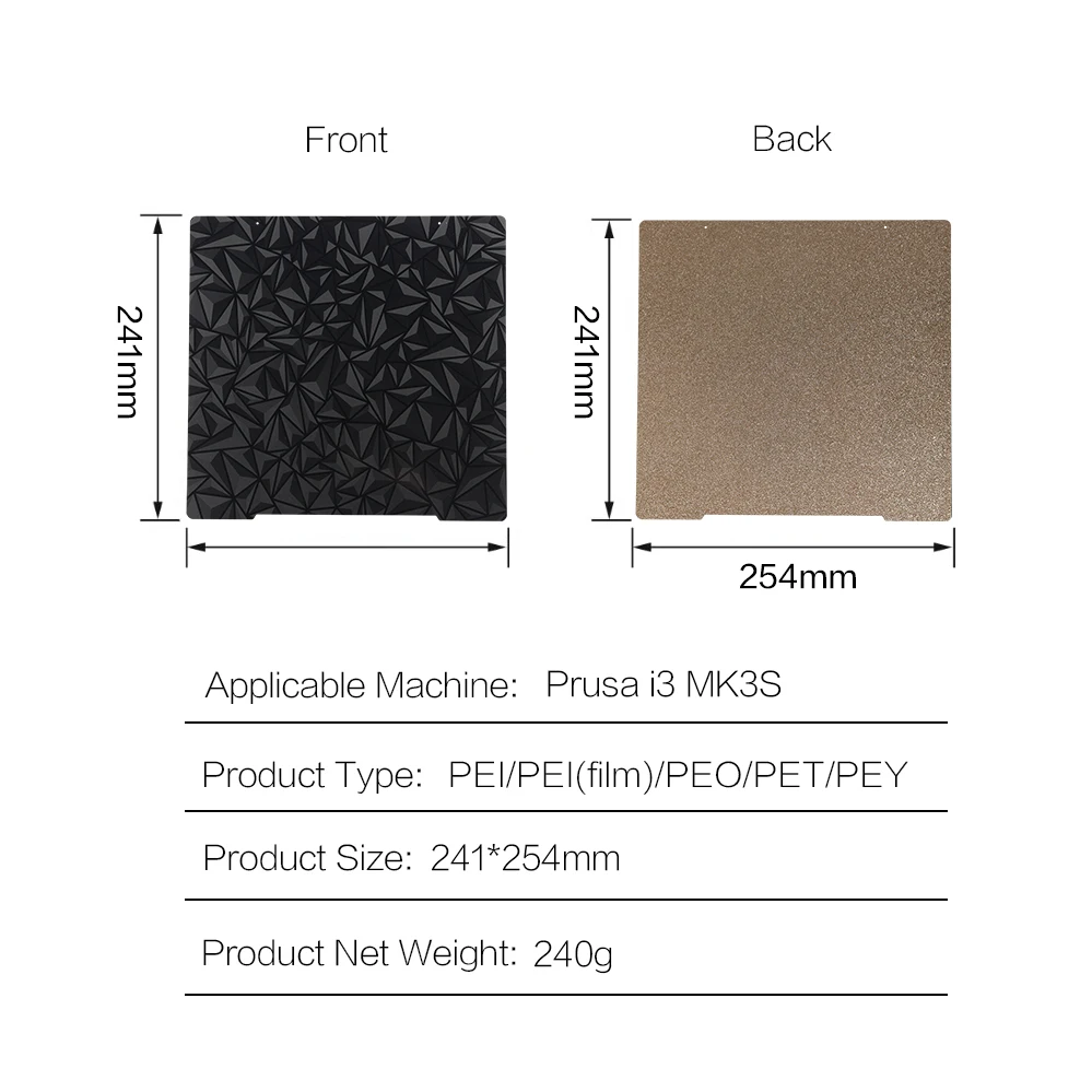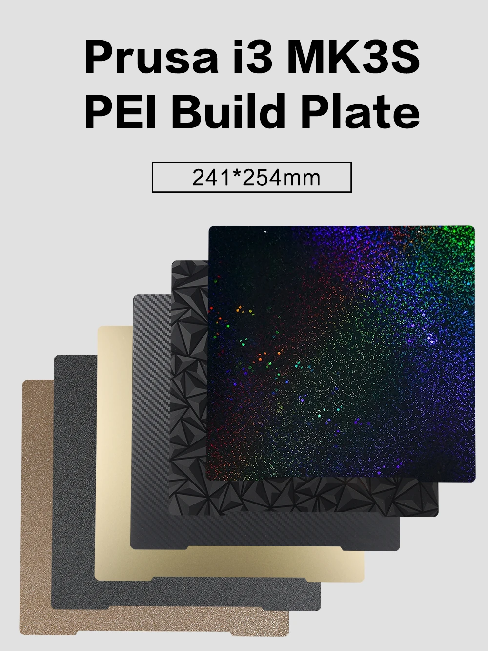 Comprar Impresora 3D de doble cara texturizada PEI, hoja de acero de resorte suave, placa de construcción PEO PEY PET, fibra de carbono para Prusa i3 MK3S + 241x254mm