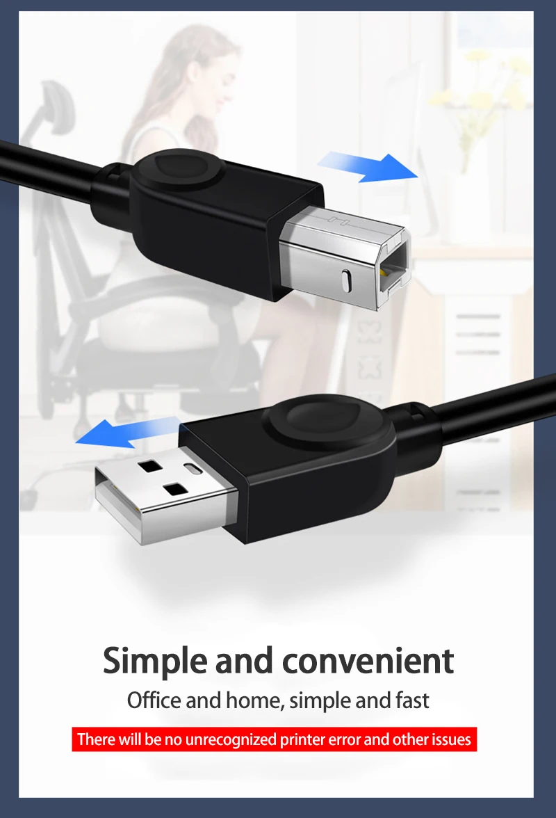USB 2.0 Printer Scanner Cable, USB Cable A Male-B Male