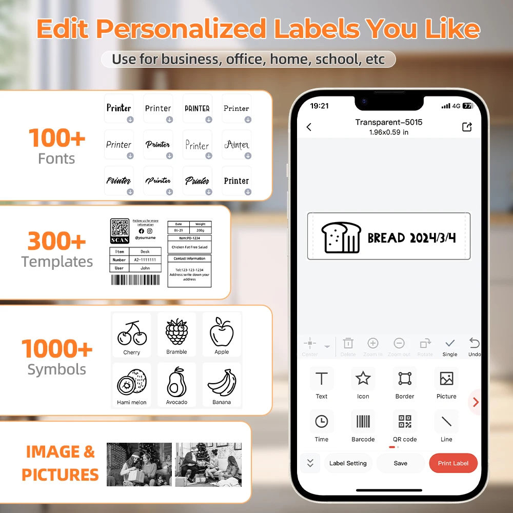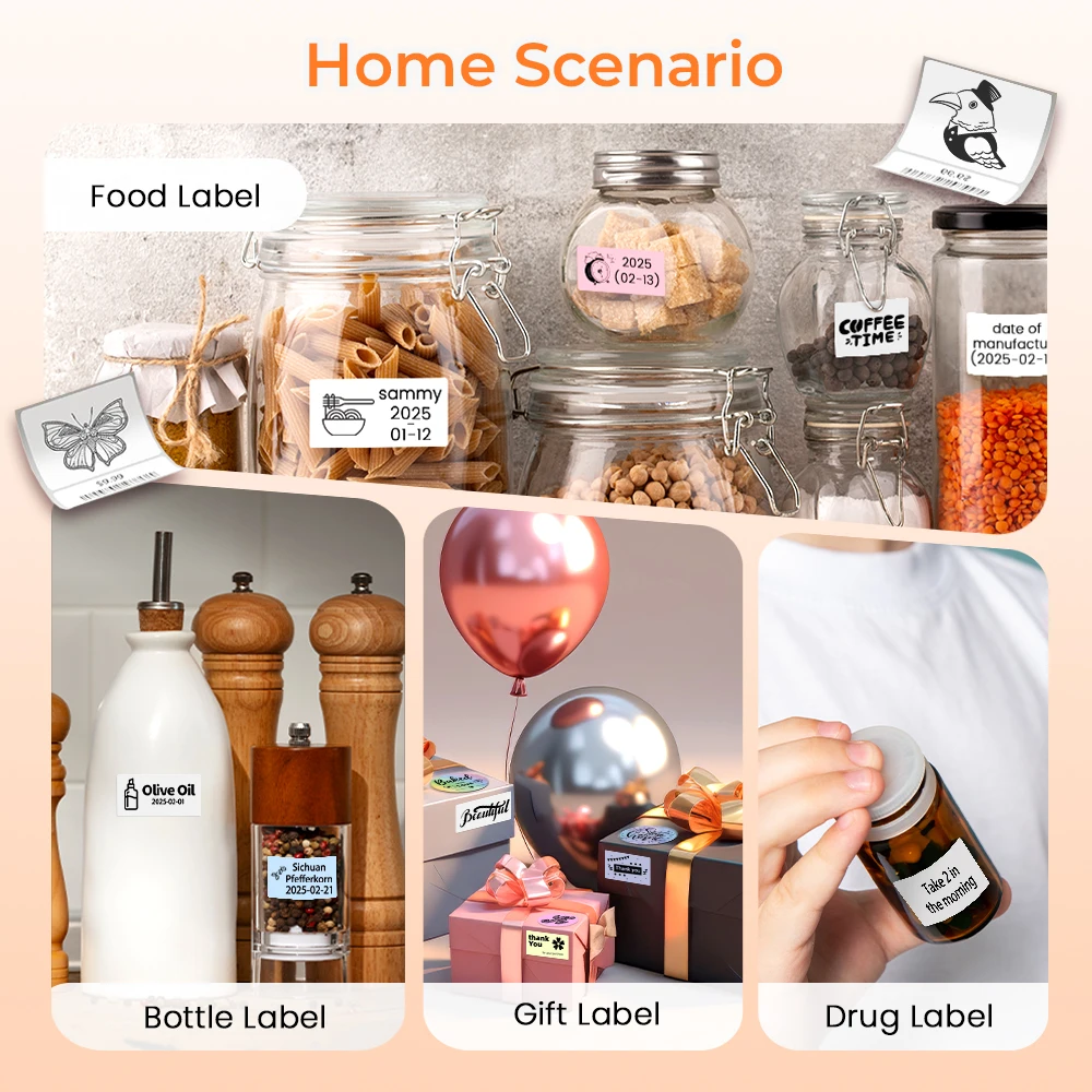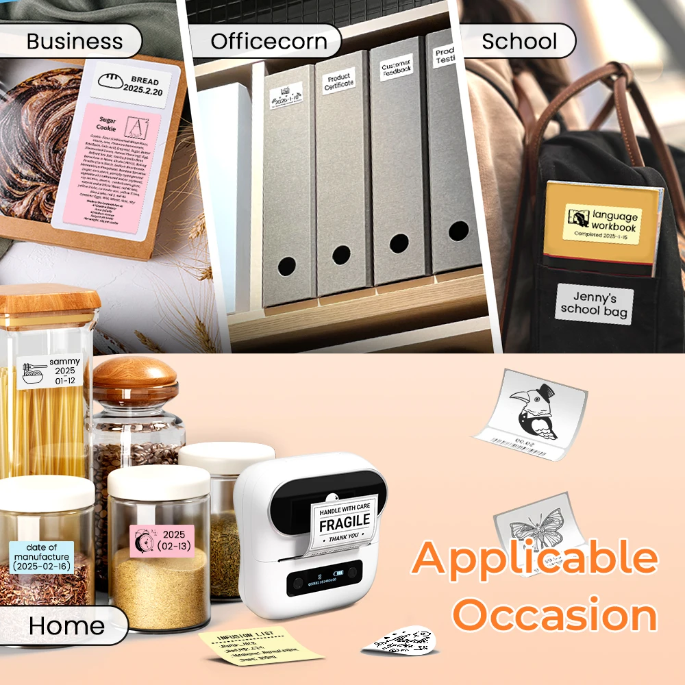 [Características]: Las etiquetas térmicas Homemo M220 están hechas de materiales de alta calidad que garantizan una impresión clara y una resistencia significativa a las manchas y rayones, impermeables y sin BPA.