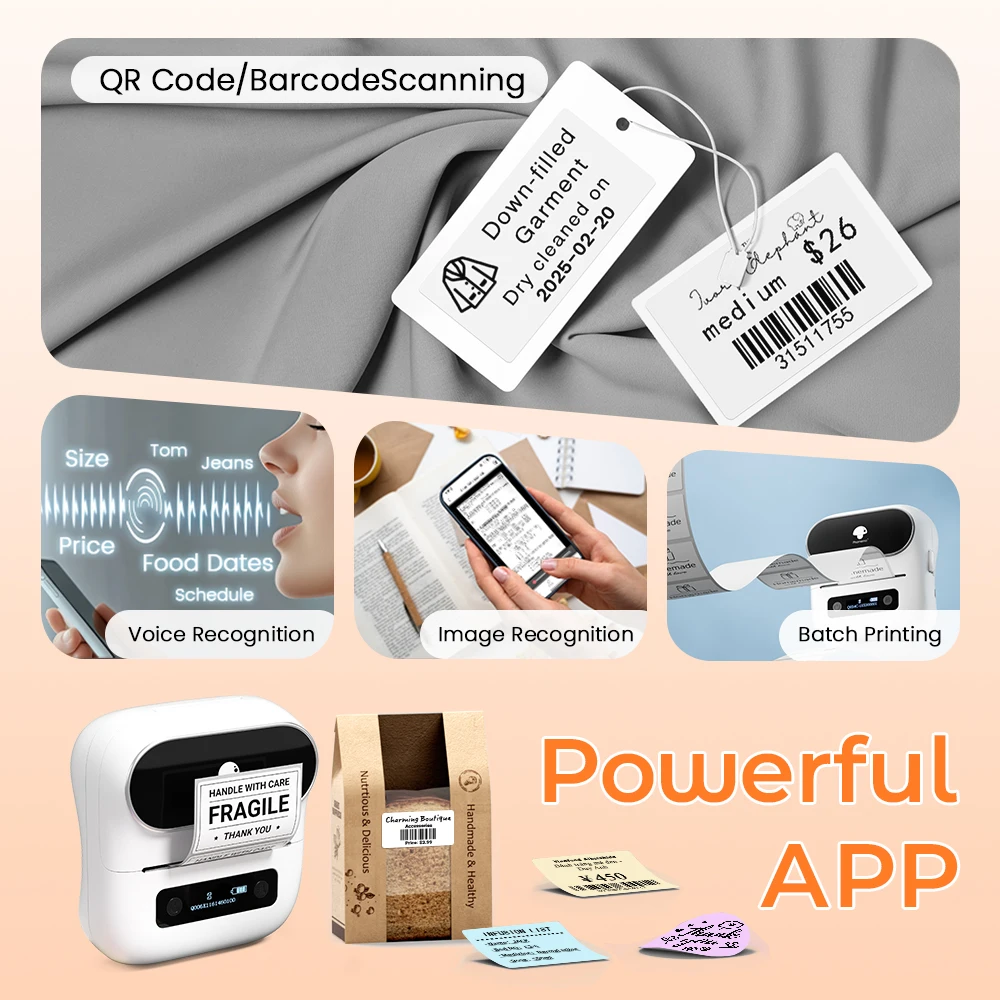 Impresora de etiquetas de códigos de barras de 3 pulgadas y 80 mm_La impresora para rotuladora Homemo M220 admite el ancho del papel de impresión es de 20 mm a 80 mm, 5 V/2 A, batería de gran capacidad de 2200 mAh y 3 minutos de suspensión automática, el fabricante de códigos de barras M220 imprime más del 30 % de tiempo que una impresora de etiquetas similar en el mercado.
