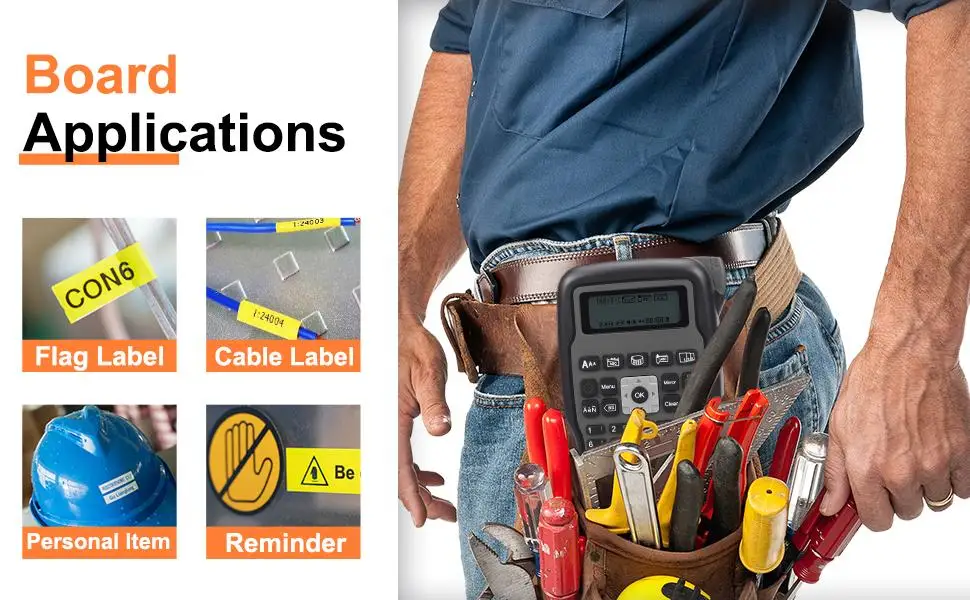 ① La impresora de etiquetadora E1000 se puede utilizar para etiquetar y organizar obras de construcción, electricidad, fábrica, telecomunicaciones, laboratorio, postbox, activos fijos y otros, incluidos electricistas, técnicos, mecánicos, operadores al aire libre,. Etc.;