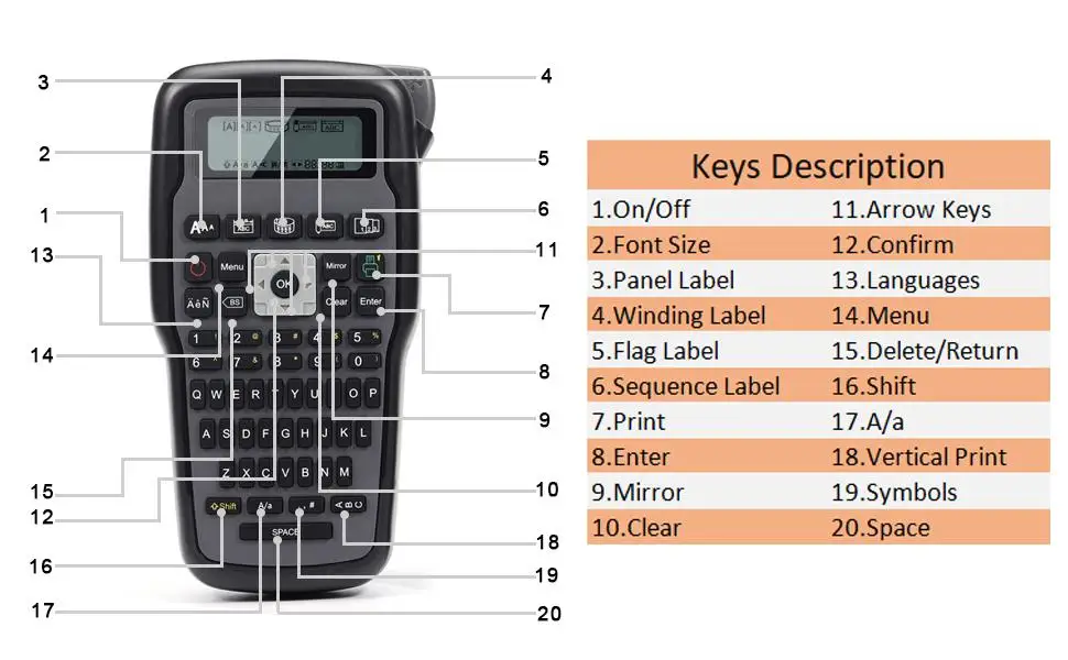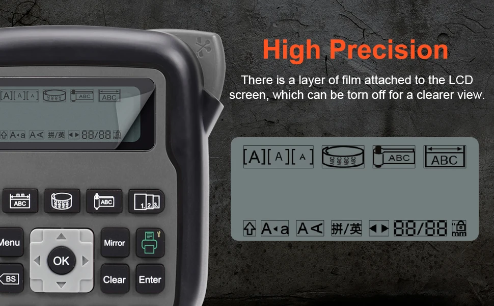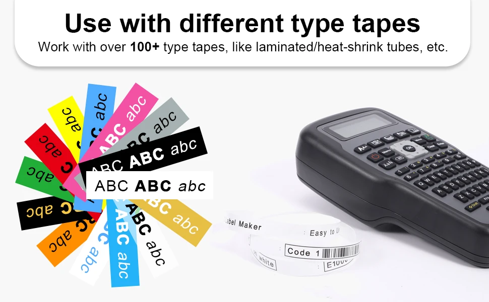 ② Funciones potentes: Ajuste automático -- apriete la cinta laminada automáticamente después de insertar; Ahorro automático -- guarde automáticamente el contenido de uso frecuente; Impresión de texto/código de barras -- puede imprimir código de barras, 22 idiomas,. Más de 940 símbolos, 4 marcos y más; Recuperación de memoria -- guarda automáticamente casi 5 registros impresos y los recupera; Impresión continua -- edita varias etiquetas de diferente contenido a la vez, etc.;