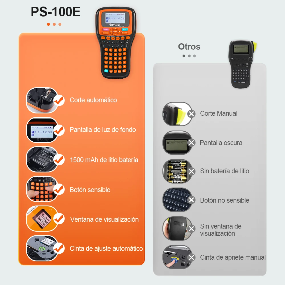 Advertencia: Recientemente compramos la impresora de etiquetas PRISTAR PS-100E para uso comercial. Sin embargo, este dispositivo no satisface nuestras necesidades por varias razones. El idioma francés no está disponible en la configuración del dispositivo. Como resultado, se utilizan caracteres especiales en francés (como é, è, ë, â, ü, etc.). no se puede imprimir. El menú de la impresora de etiquetas solo ofrece inglés o chino, lo que limita severamente su uso en un entorno francófono. Después de contactar al vendedor, nos dijeron que la versión multilingüe de la impresora de etiquetas estaba agotada. Sin embargo, según el sitio web de AliExpress, el producto está actualmente a la venta y afirma que admite siete idiomas. Dicho esto, si lees atentamente la letra pequeña, solo dice 'soporte en inglés', lo cual es muy diferente de un dispositivo verdaderamente multilingüe. Conclusión: Si estás considerando comprar la impresora de etiquetas PRISTAR PS-100E, asegúrate de que no necesitas caracteres especiales o una interfaz en francés.