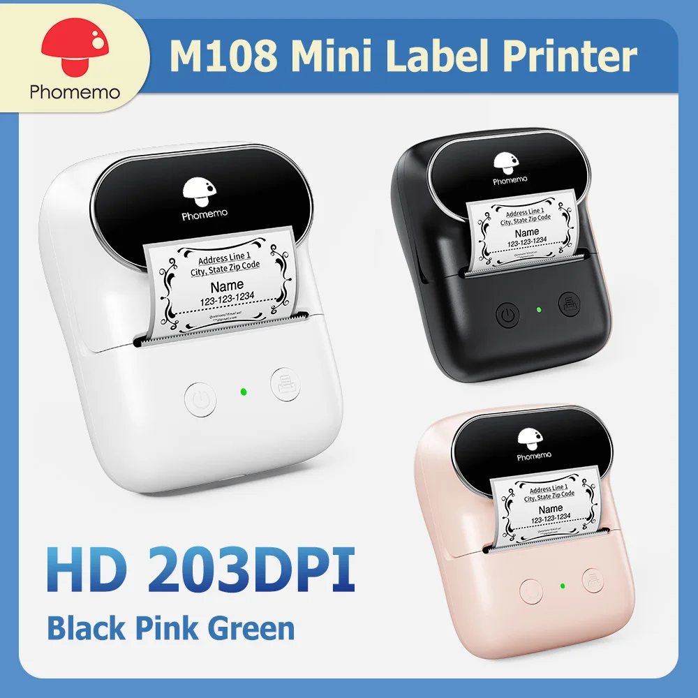 Comprar Impresora de etiquetas térmica Phomemo M108, fabricante de etiquetas inalámbrico con Bluetooth, ancho de impresión de 20-50mm, hogar, escuela, oficina, similar a B1 B21
