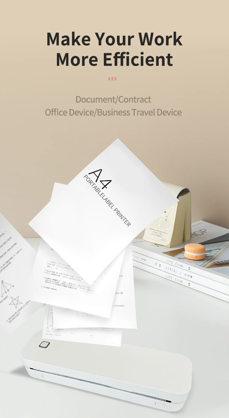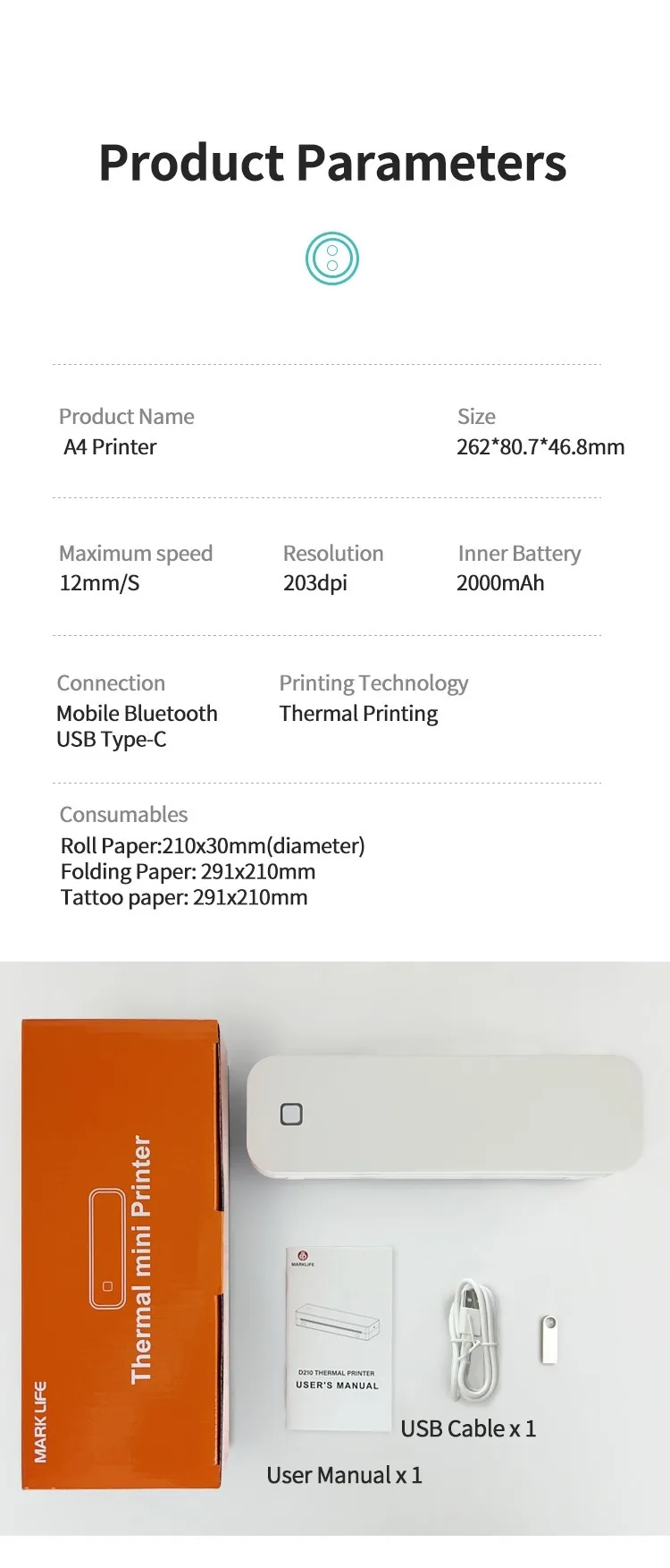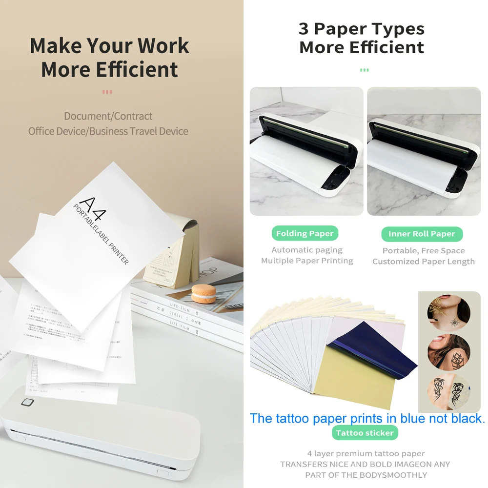Comprar Impresora térmica A4 203DPI, impresora de documentos fotográficos de bolsillo con Bluetooth, notas, impresión de tatuajes, impresora térmica inalámbrica sin tinta