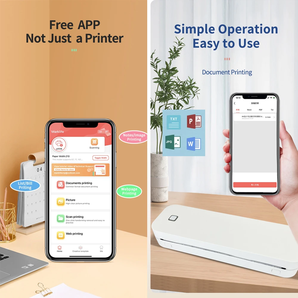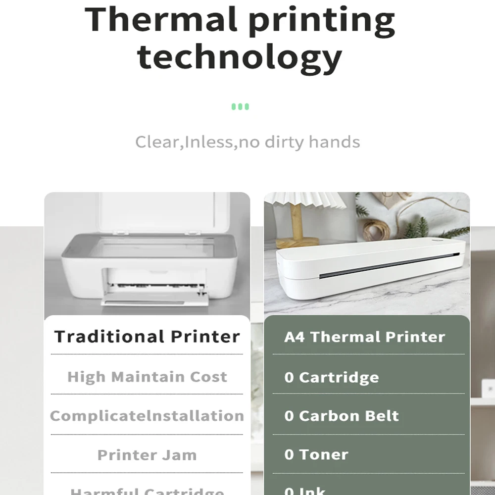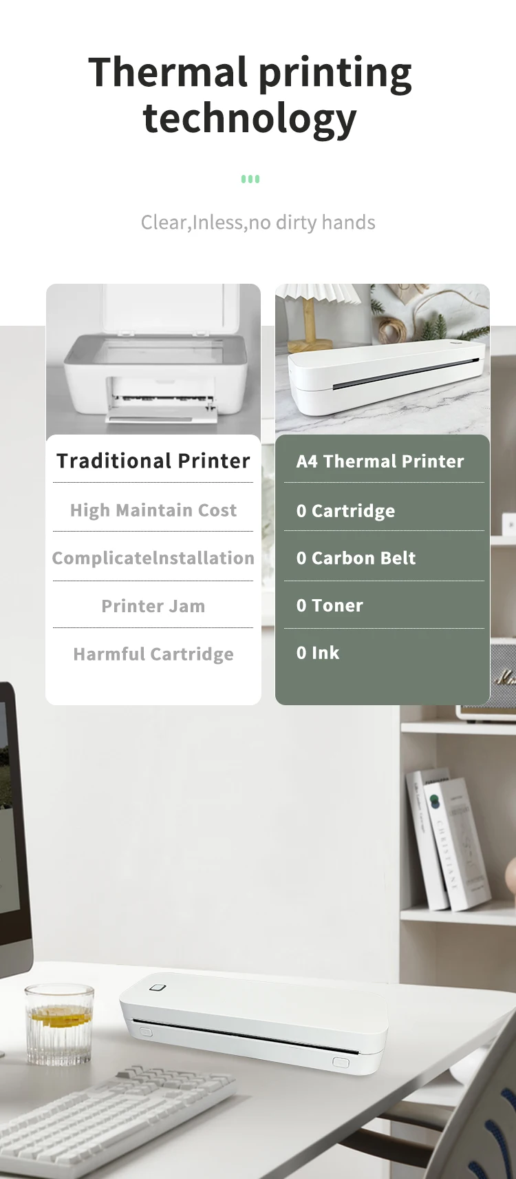 Comprar Impresora térmica A4 203DPI, impresora de documentos fotográficos de bolsillo con Bluetooth, notas, impresión de tatuajes, impresora térmica inalámbrica sin tinta