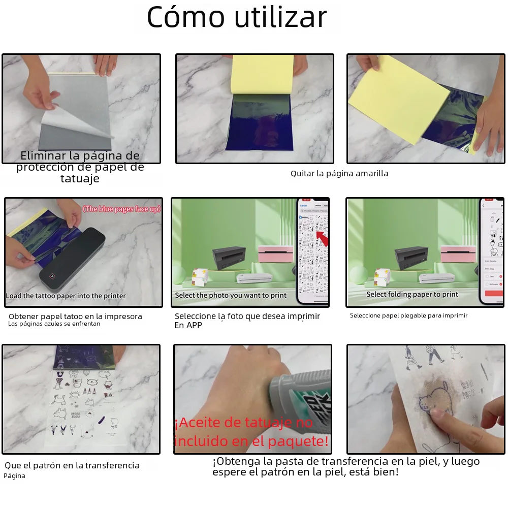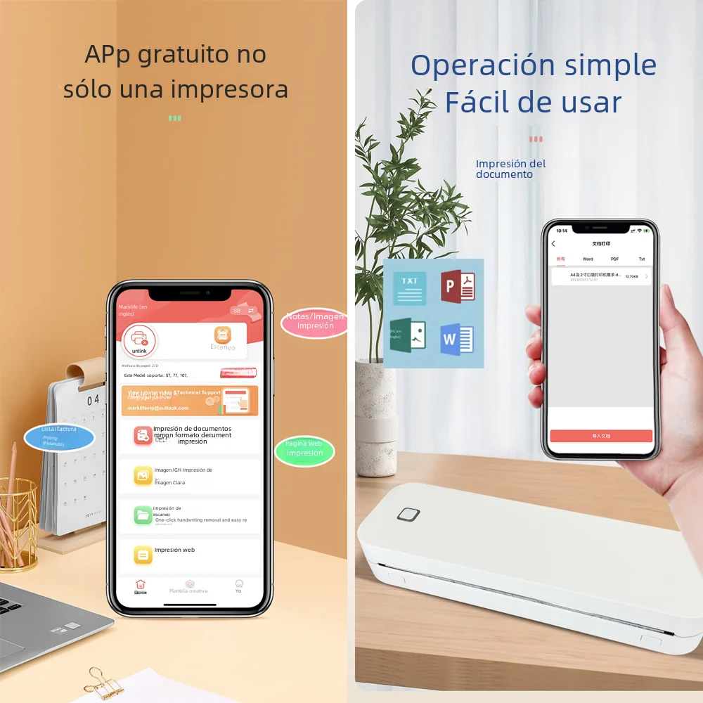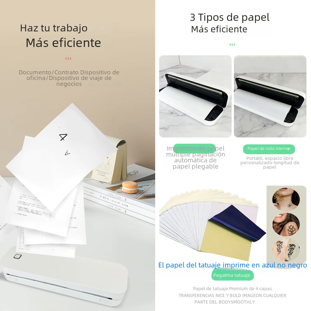 Comprar Impresora térmica A4 203DPI, impresora de documentos fotográficos de bolsillo con Bluetooth, notas, impresión de tatuajes, impresora térmica inalámbrica sin tinta