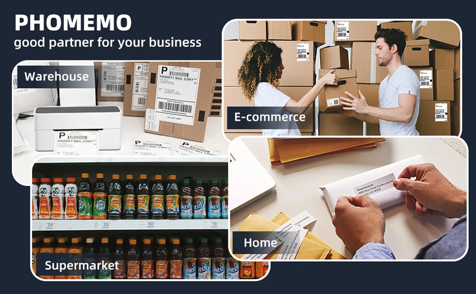 Usar una impresora de etiquetas térmicas también es un ahorrador de efectivo, ya que hay impresión logística de alto rendimiento con salida siempre que necesite comprar tinta o cartuchos. Phomemo proporciona la manera más rápida, confiable y asequible de imprimir sus etiquetas.