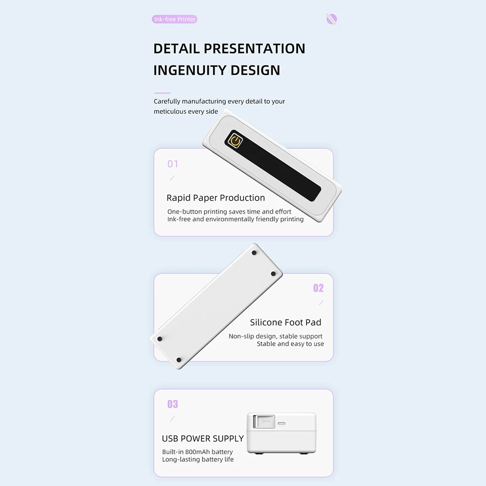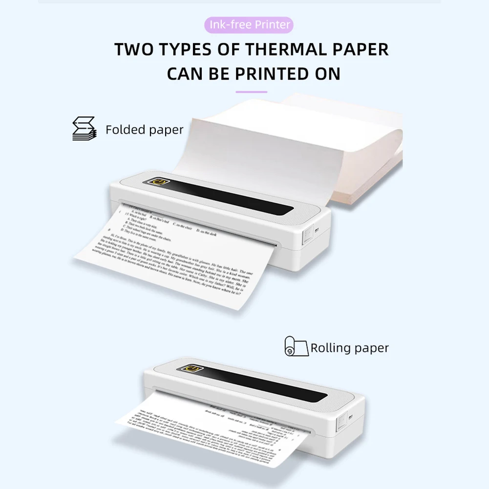 2. Tecnología sin tinta:Esto Impresora térmica de bolsilloOpera utilizando tecnología térmica, eliminando la necesidad de cartuchos de tinta, tóner o cintas. Despídase de las obstrucciones y el mantenimiento relacionados con la tinta: Simplemente reemplace el rollo de papel térmico y continúe imprimiendo con facilidad.
