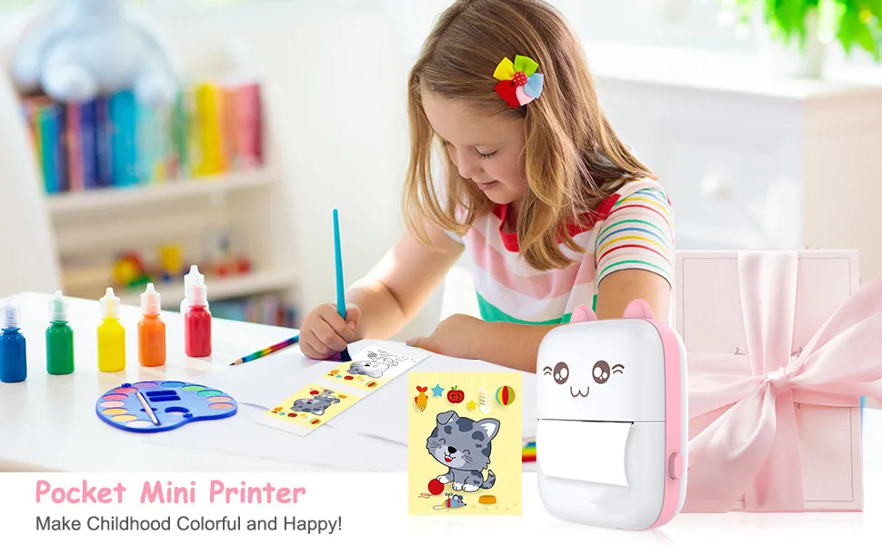 Mini impresora de bolsillo, mini impresora térmica inalámbrica Bluetooth con aplicación Android o iOS para imágenes, fotografías de estilo retro, recibos, notas, listas, mensajes, impresión de códigos QR, impresora inteligente portátil.