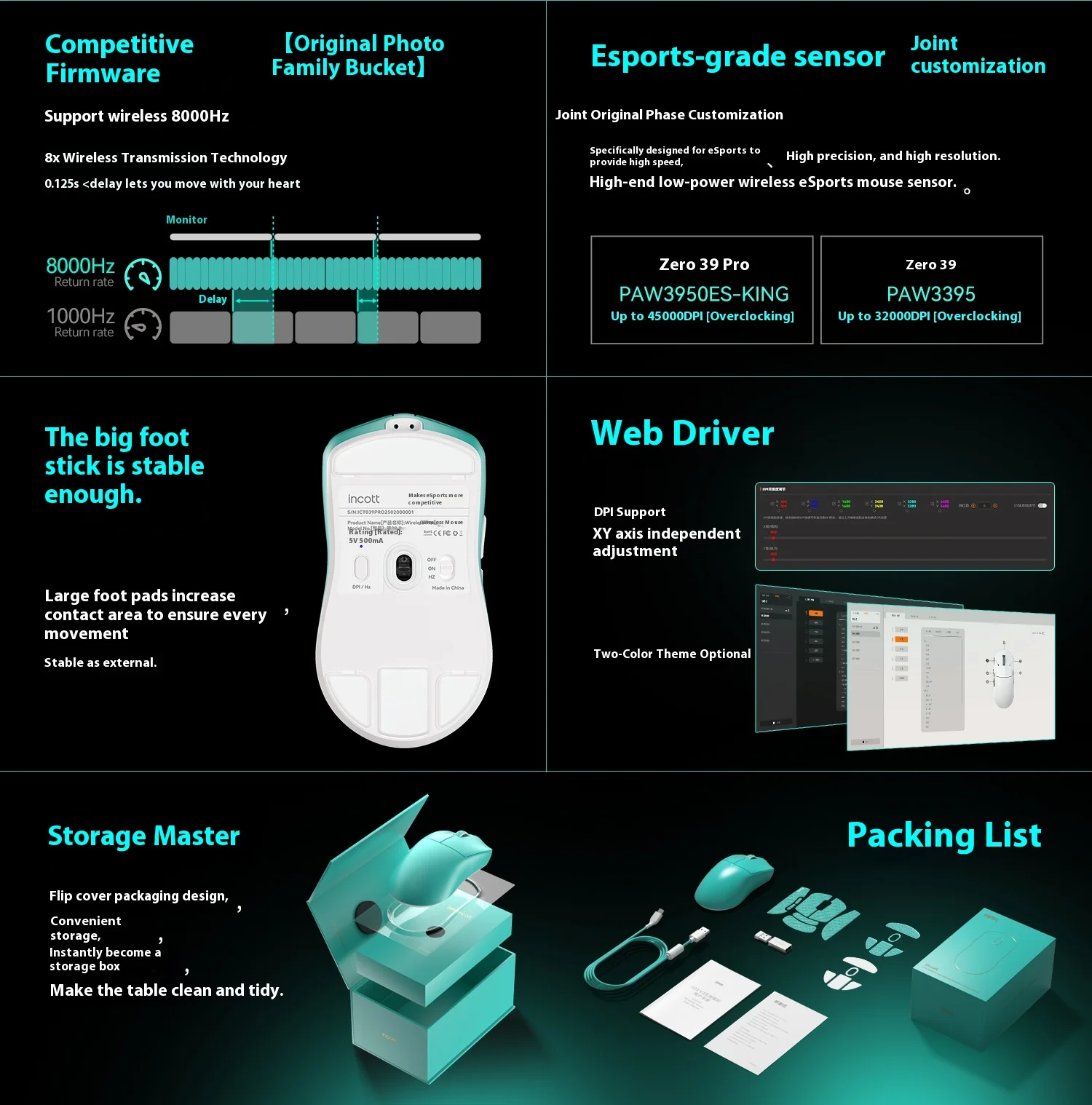 Comprar Incott 039 Pro Ratón inalámbrico Modo triple 8K Velocidad de retorno Batería de larga duración Controlador web Ergonomía Ratón ligero para juegos de oficina