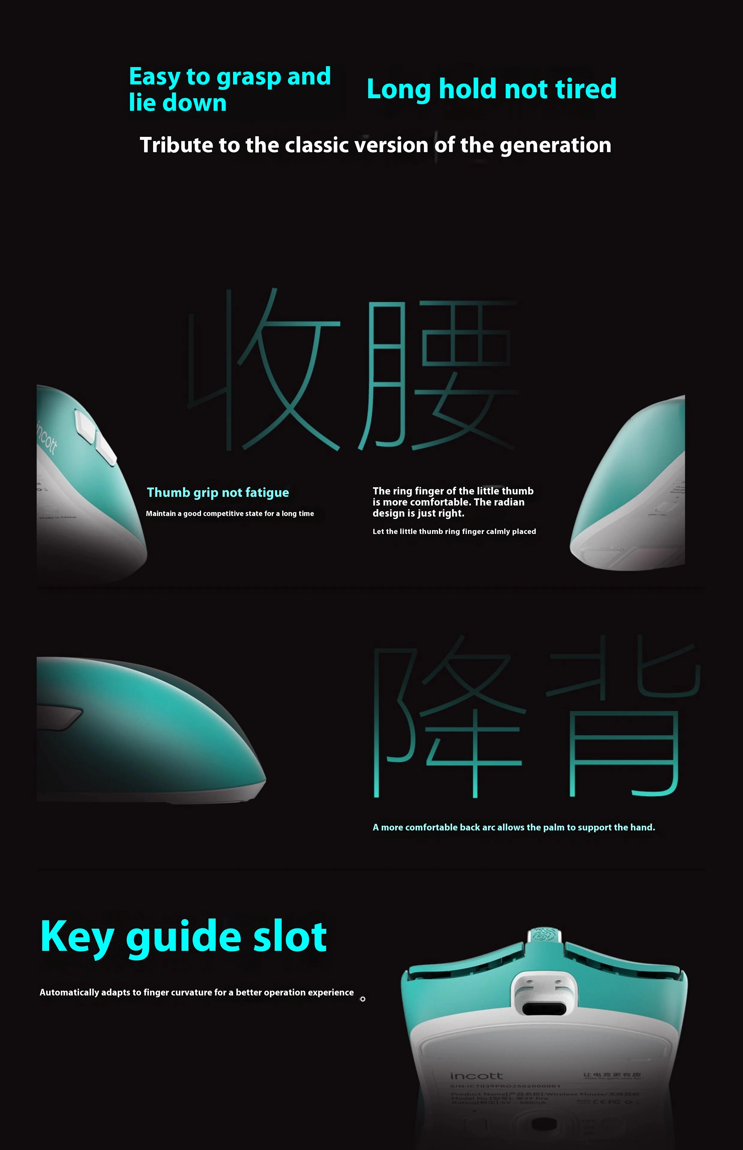 Incott 039 Pro Ratón inalámbrico Modo triple 8K Velocidad de retorno Batería de larga duración Controlador web Ergonomía Ratón ligero para juegos de oficina