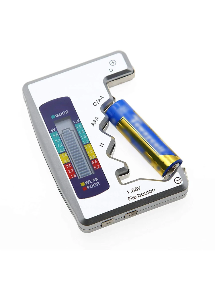 • ALTA COMPATIBILIDAD: no solo es adecuado para AA, AAA, C, CR123A, D, 9V, N, CR2, CRV3, 2CR5, CR-P2 prueba de batería cilíndrica, pero también bueno para comprobar una amplia variedad de baterías de la pila del botón