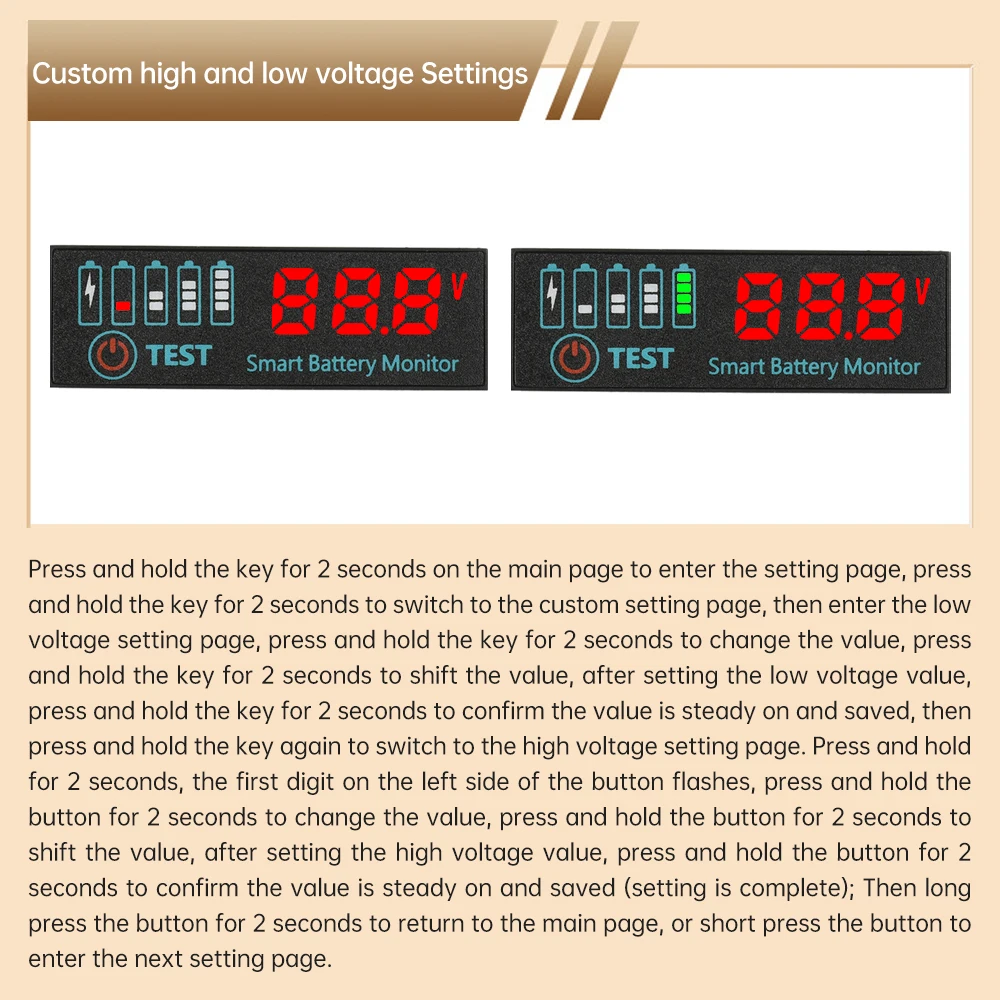 2.Configuraciones personalizadas de alto y bajo voltaje, flexibles para adaptarse a diversas necesidades: los usuarios pueden configurar libremente los umbrales de alto y bajo voltaje de acuerdo con los escenarios de aplicación reales y las preferencias personales.